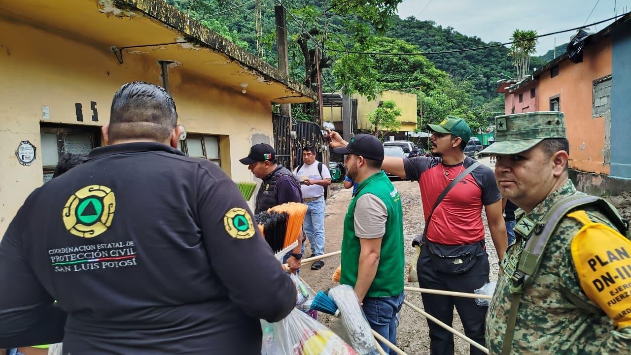 Con el respaldo decidido del Gobernador del Estado, Ricardo Gallardo Cardona, la tarde de este sábado llegaron a Tamazunchale 20 camiones cargados con insumos para las tareas de desinfección de calles y hogares, ante las lluvias registradas en la región, ya que se acumularon capas de lodo de hasta 10 centímetros, lo que puede generar focos de infección. Estas acciones permitirán retomar la actividad escolar y comercial lo antes posible.