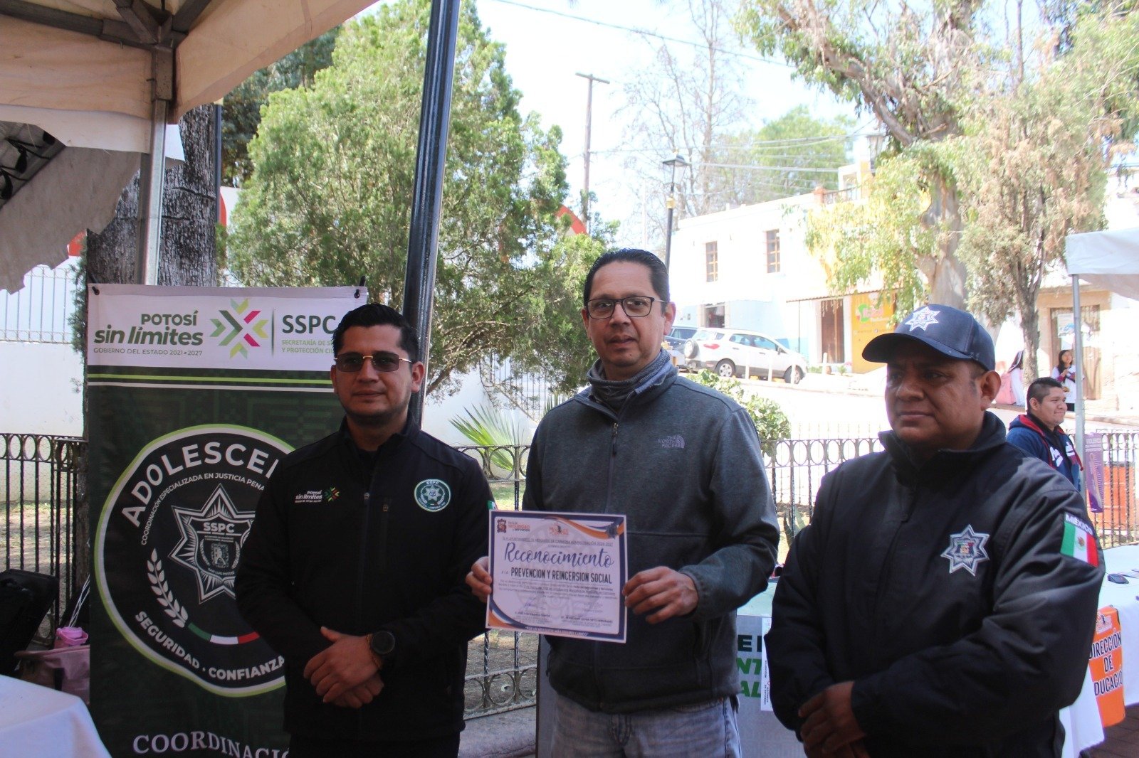 Como parte del trabajo de proximidad social que promueve el Gobernador Ricardo Gallardo Cardona, la Secretaría de Seguridad y Protección Ciudadana (SSPC) participó en la Feria de Seguridad y Servicios en Mexquitic de Carmona, en coordinación con autoridades municipales, acercando servicios y programas a más de 720 personas.