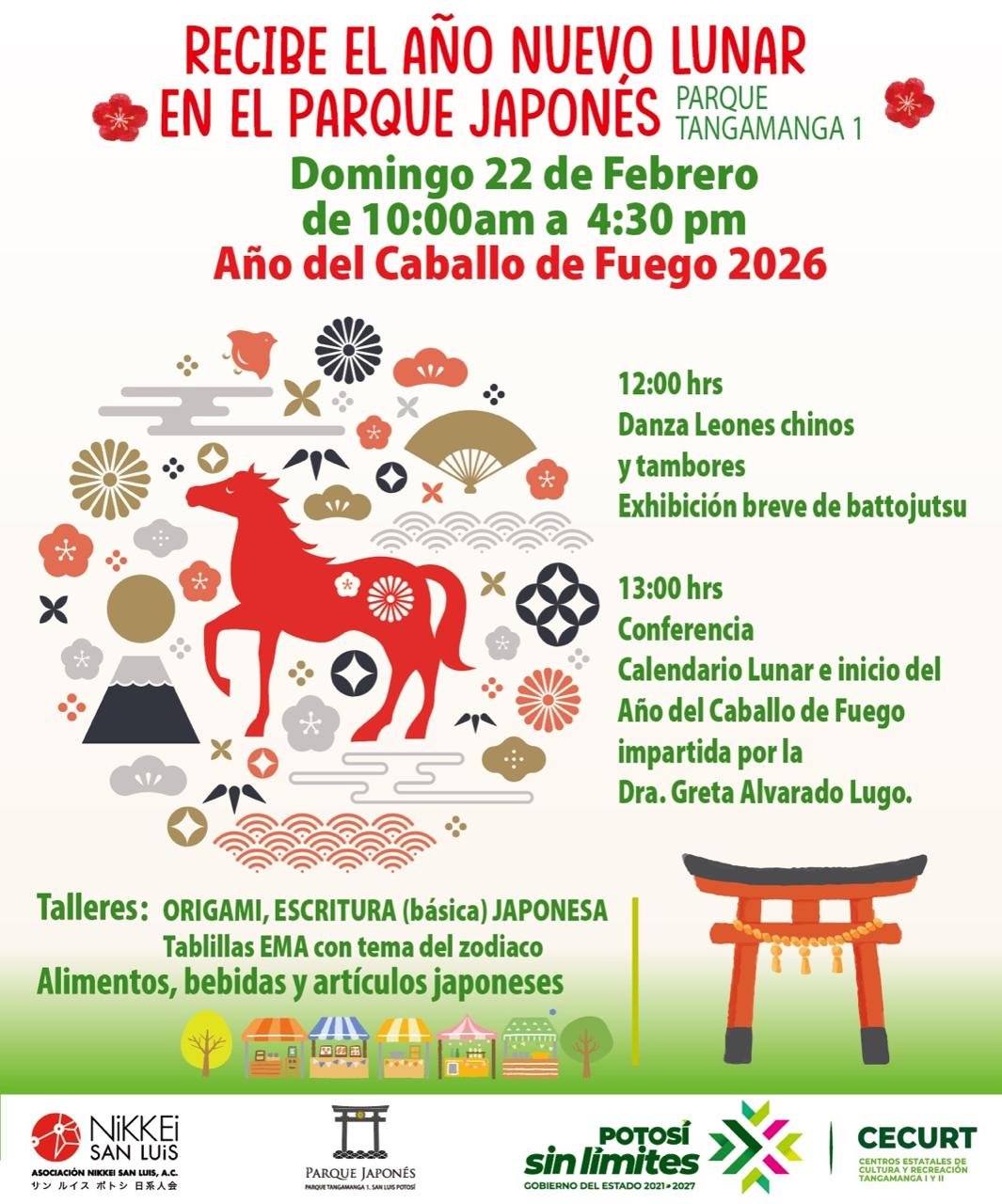 Este sábado 21 de febrero, el Teatro de la Ciudad del Parque Tangamanga I recibirá a Kabrönes (Ex Mägo de Oz) con una noche de rock en vivo; mientras que el domingo 22 de febrero, de 10:00 a 16:30 horas, el Parque Japonés será sede del Año Nuevo Lunar 2026, Año del Caballo de Fuego, con actividades culturales y tradicionales para toda la familia.