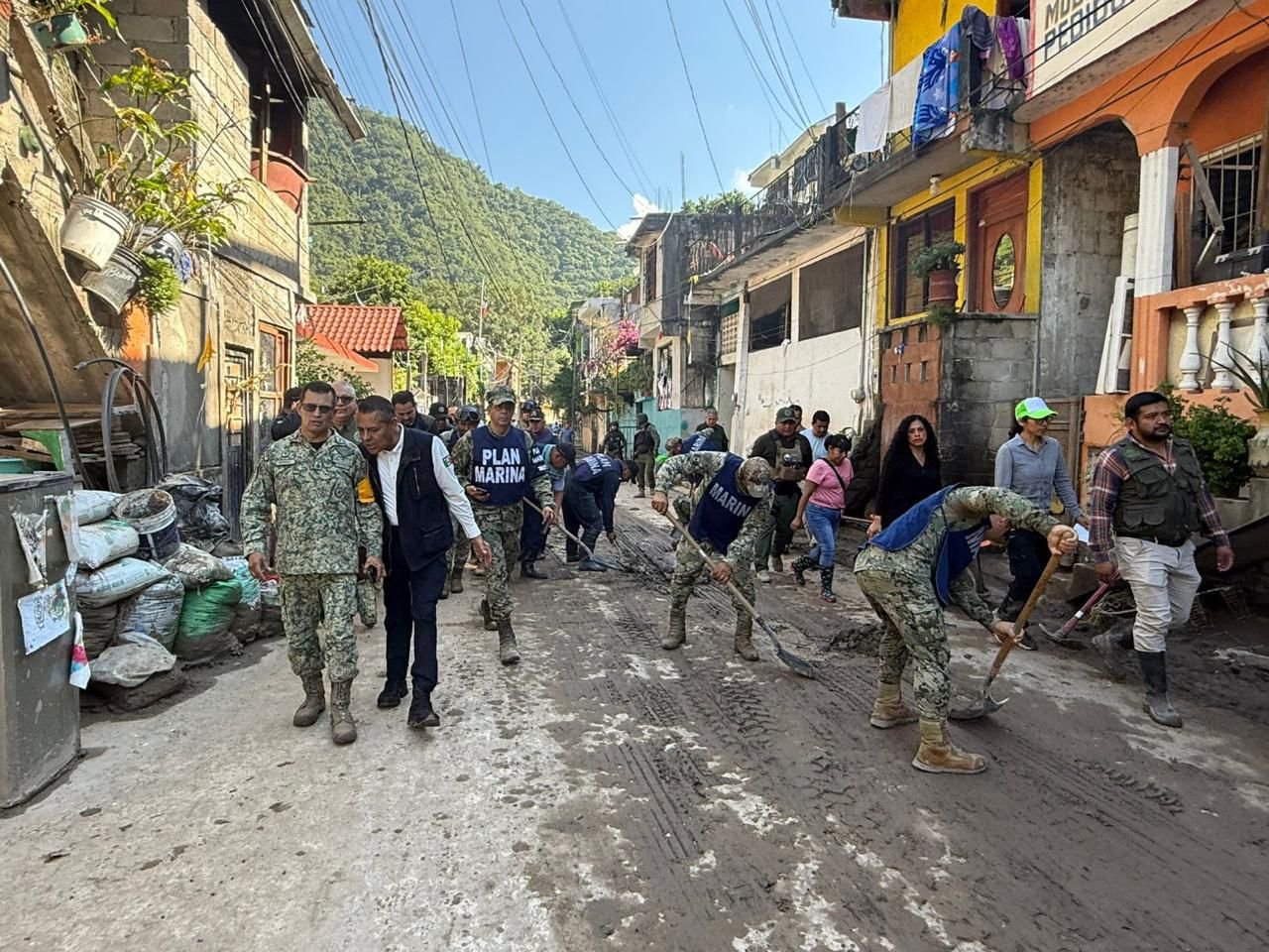 En Tamazunchale, se refuerzan las labores de limpieza con maquinaria y personal especializado. La remoción de escombros y lodo busca restablecer condiciones de habitabilidad y permitir el retorno seguro de las familias evacuadas.