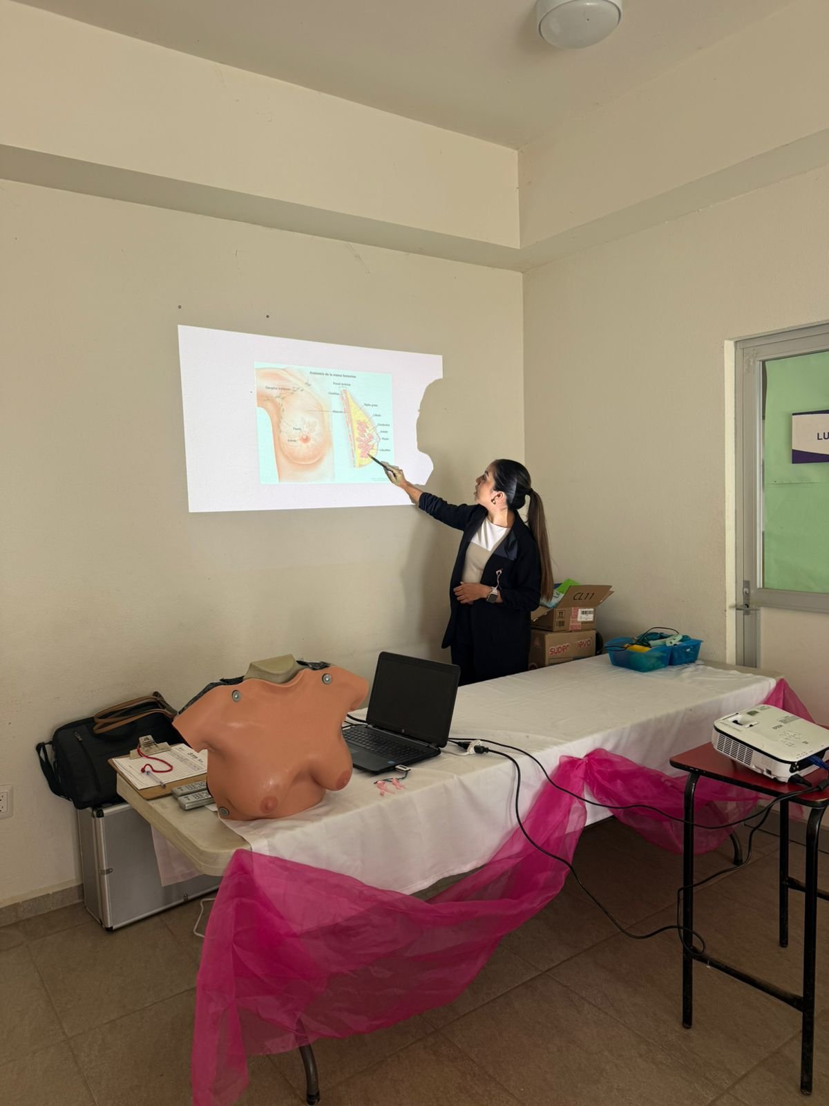 La actividad destacó la importancia de ver a la persona antes que al paciente, reconociendo la experiencia única de cada caso. Durante el evento se ofrecieron herramientas informativas y prácticas mediante un modelo anatómico de simulación, que permitió orientar a las asistentes sobre la técnica correcta de autoexploración, para identificar señales de alerta y acudir de manera temprana a los servicios de salud especializados.