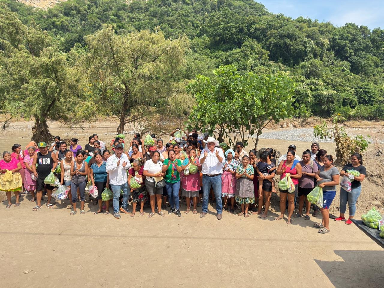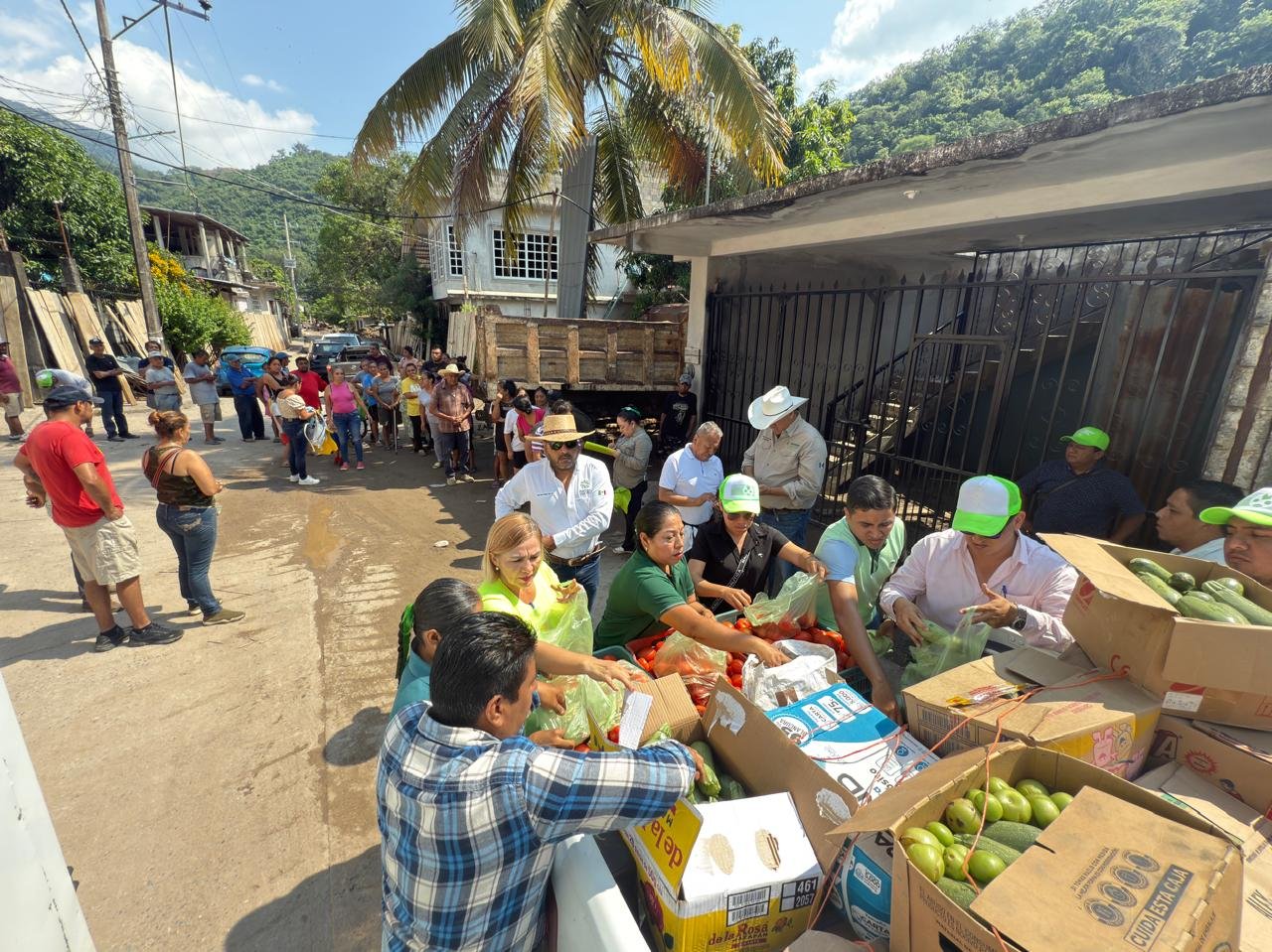 Encabezados por el titular de la Secretaría de Desarrollo Agropecuario y Recursos Hidráulicos (Sedarh), Jorge Luis Díaz Salinas, funcionarios estatales recorrieron diversas comunidades del municipio de Tamazunchale, donde entregaron tomate cherry, saladet, calabacita y lechuga a cerca de mil 500 familias que resultaron afectadas en sus cultivos y fuentes de ingreso.