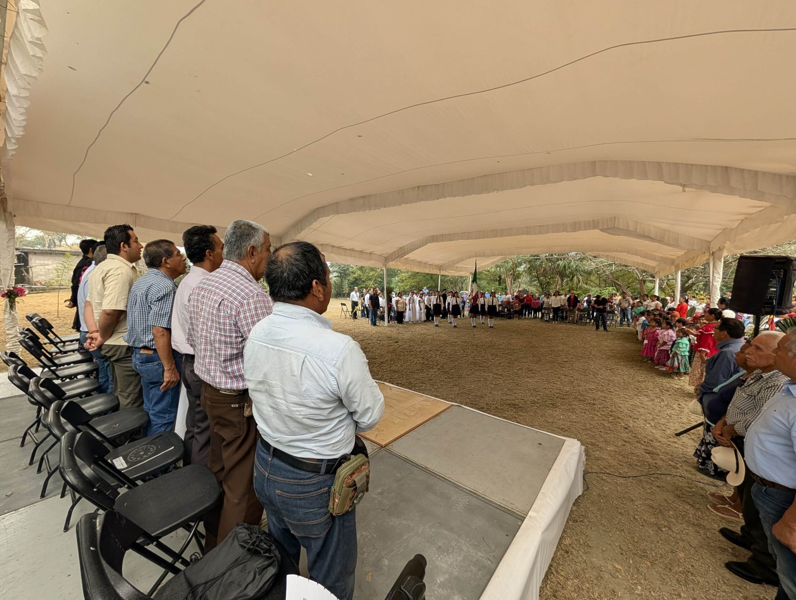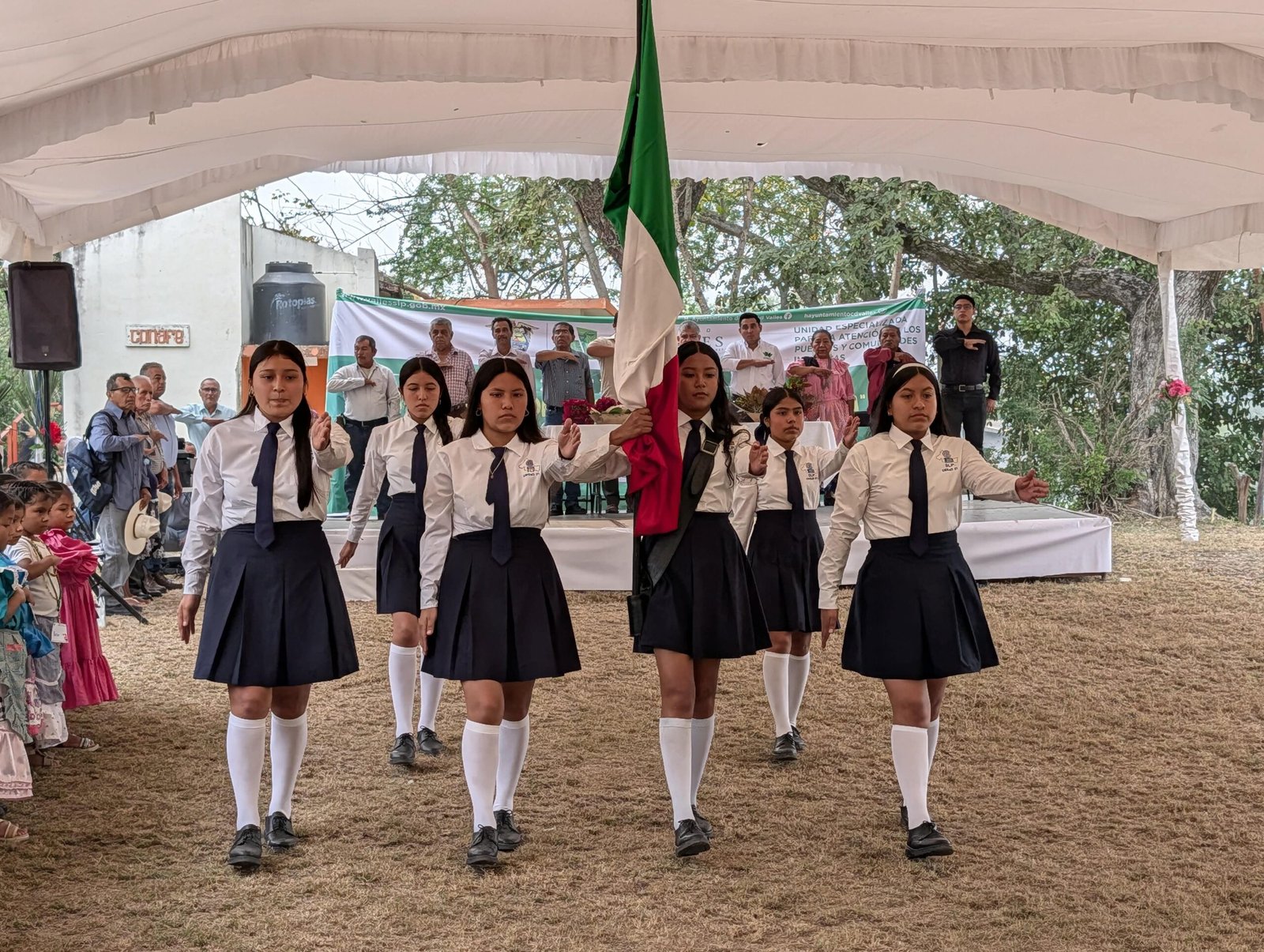 La ceremonia inició con honores al Lábaro Patrio, reafirmando el respeto a los símbolos nacionales y el reconocimiento a la diversidad cultural que enriquece a nuestro país. Posteriormente, la directora del plantel anfitrión, profesora Alma Delia Hernández Bautista, dio las palabras de bienvenida, destacando la importancia de preservar la lengua tének desde la educación inicial.