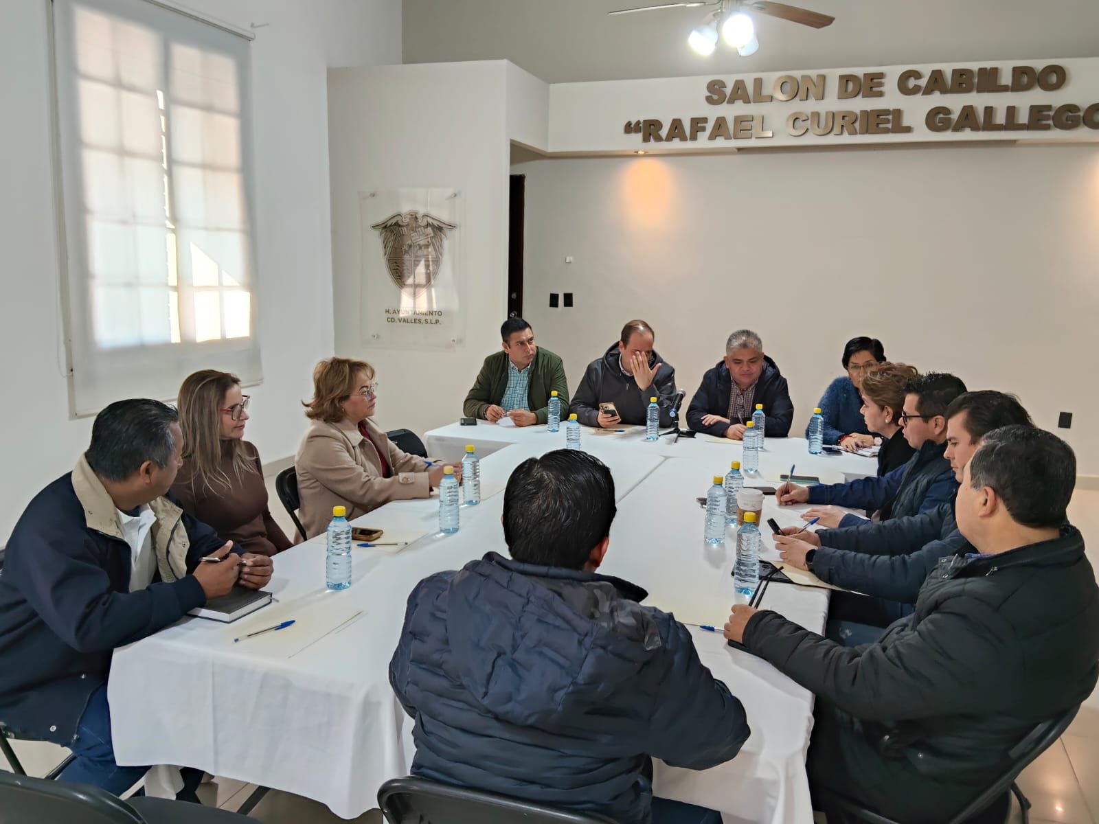 CIUDAD VALLES, S.L.P.- Por instrucciones del Presidente Municipal David Armando Medina Salazar, el Secretario General del Ayuntamiento, Luis Ángel Contreras Malibrán, acompañado del Regidor Gerardo Roberto González Pérez, encabezó una reunión de trabajo con representantes de las distintas cámaras empresariales de la ciudad, entre ellas comercio, hotelería, restauranteros y de la construcción, con la finalidad de escuchar de primera mano sus necesidades y fortalecer la coordinación institucional.