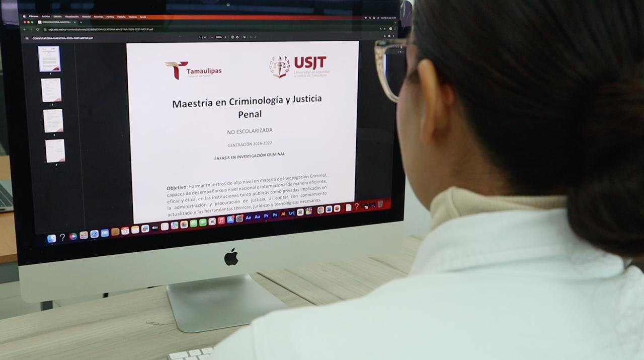 Enero 14 de 2026, Ciudad Victoria, Tamaulipas.– Como parte de su oferta académica, la Universidad de Seguridad y Justicia de Tamaulipas (USJT) aperturó la inscripción a sus dos maestrías en línea: la primera en Criminología y Justicia Penal; y la segunda en Desarrollo de Políticas Públicas en Materia de Seguridad.