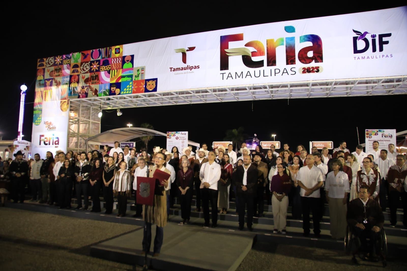 En su mensaje de bienvenida, la secretaria de Economía, Ninfa Cantú Deándar expresó que la Feria 2025 es incluyente, segura, familiar, con un profundo sentido social y es, además, un motor económico que dinamiza el desarrollo regional, que impulsa el turismo, el comercio local y el arraigo a nuestras tradiciones. “Como usted lo instruyó, señor gobernador, nuestra feria es un encuentro con nuestra identidad, un escaparate para el talento de nuestros emprendedores, artistas, gastronomía tradicional, productores, ganaderos, y tantas y tantos tamaulipecos que con orgullo vienen desde nuestras bellísimas regiones a compartir lo mejor de su tierra», mencionó. La feria cuenta en esta ocasión con 40 juegos mecánicos, incluyendo cuatro nuevas atracciones, además de zona comercial con más de 100 emprendedores y microempresas dentro del pabellón “Hecho en Tamaulipas”, la cual representa una vitrina para la innovación, el talento local y la creatividad de las distintas regiones del estado, así como la participación de 24 dependencias estatales y organismos públicos descentralizados así como los stands de los 43 municipios, que ofrecen lo mejor de sus atractivos turísticos, cultura, tradiciones y su gastronomía. En el Teatro del Pueblo la cartelera artística este año cuenta con la presentación de: Los Tigrillos, Matisse, Kumbia Kings, Cardenales de Nuevo León, Lucha Libre, Disney Magic, Kumbre con K, Invasores, Liberación, Aleks Syntek y Pedro Fernández, en el gran cierre el 26 de octubre, mientras que en el Centro de Espectáculos actuarán Alfredo Olivas, Palomazo Norteño, El Trono de México, Christian Nodal y Grupo Firme. Como parte de las actividades agropecuarias, se llevarán a cabo la Exposición Nacional de la Raza Beefmaster, la Exposición Nacional de la Raza Brangus, la exposición de ovinos y caprinos, la exposición de maquinaria agrícola, así como diversas demostraciones de productos realizados con sorgo blanco, rodeo americano y una charreada.