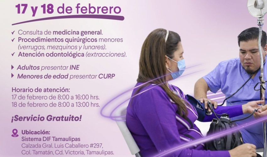 La atención gratuita se brindará los días 17 y 18 de febrero en las instalaciones del Sistema DIF Tamaulipas.