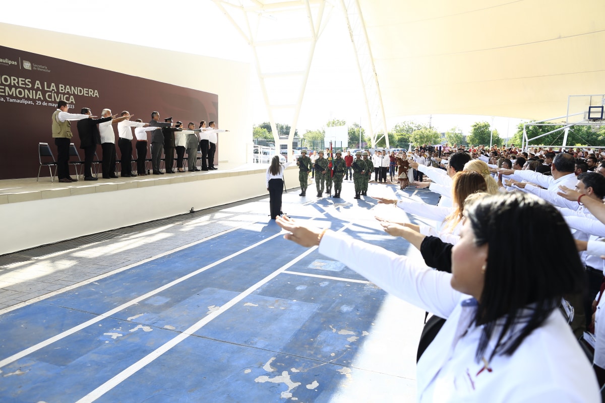 En la ceremonia cívica, el juramento a la bandera estuvo a cargo de Karla Valeria Flores Castro, mientras que Martha Elaine Picazo Wong y Brisa Rivera Domínguez dieron lectura a las efemérides de la semana.