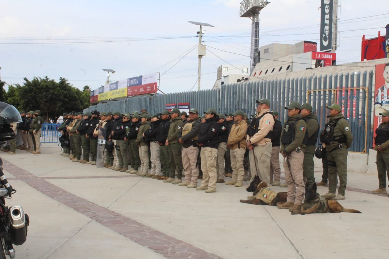 La Secretaría de Seguridad y Protección Ciudadana del Estado (SSPCE) informó que participarán elementos de la Fiscalía General del Estado (FGE), Policía Vial, corporaciones municipales, Protección Civil y cuerpos de auxilio, además de seguridad privada en el estadio Libertad Financiera. Este despliegue se integra al cambio que se vive y se siente en la organización de eventos masivos, priorizando la seguridad de la afición.