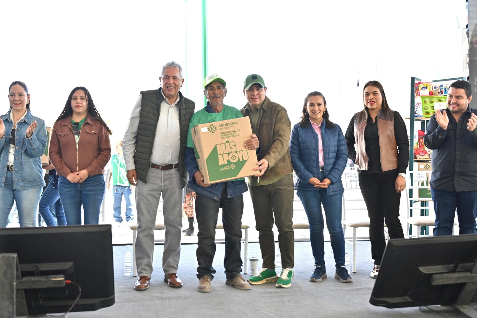 • Además, entregó paquetes del Programa de Seguridad Alimentaria, que ya incluyen artículos para la limpieza en el hogar.