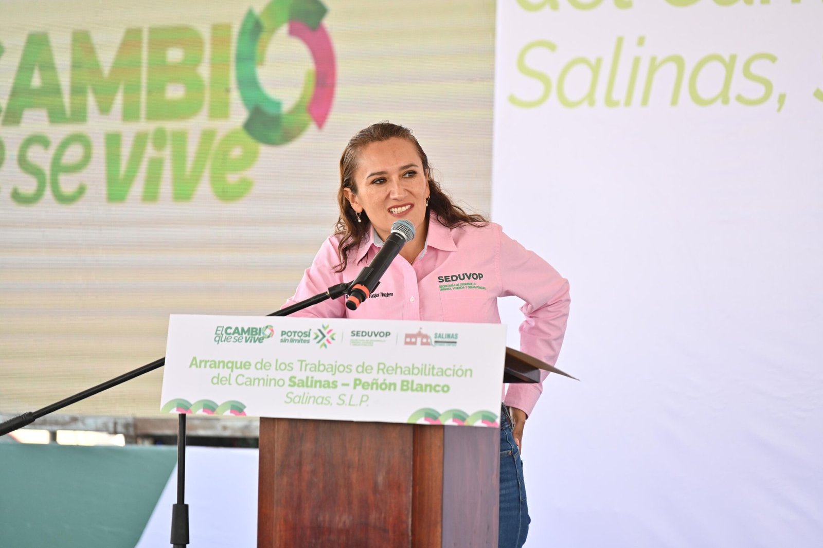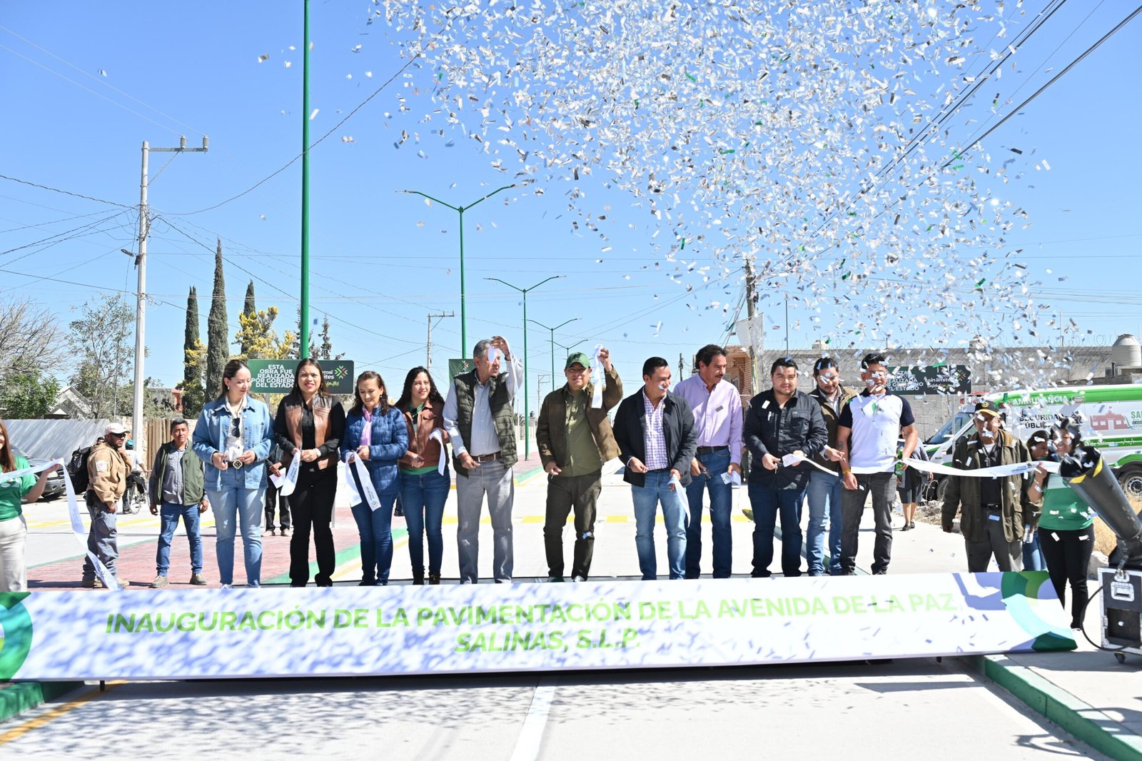 Confirmando el cambio que se vive y se siente, el Gobernador de San Luis Potosí, Ricardo Gallardo Cardona, durante una intensa gira de trabajo por el municipio de Salinas de Hidalgo, inauguró la pavimentación con concreto hidráulico de las calles De La Paz y Nassau en la cabecera municipal, arrancó el camino Salinas–Peñón Blanco que beneficiará a 50 mil habitantes y entregó paquetes del Programa de Seguridad Alimentaria.