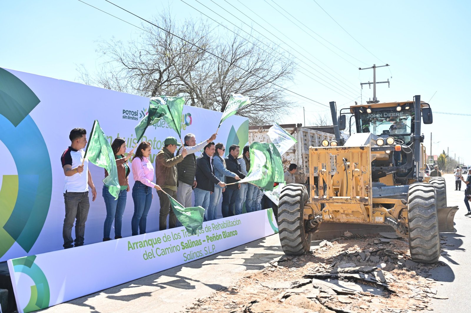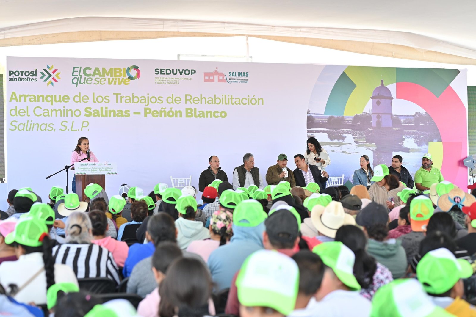 En la localidad de Conejillo, en el altiplano potosino y con el apoyo de agroproductores de la zona, el Gobernador del Estado dio el banderazo de inicio de los trabajos de reconstrucción del camino Salinas–Peñón Blanco con una longitud de 18 kilómetros, una obra largamente solicitada, que permitirá reducir tiempos de traslado, facilitar el acceso a servicios básicos y fortalecer la actividad productiva de la zona, en beneficio de más de 50 mil habitantes y generando condiciones más justas para el desarrollo regional.