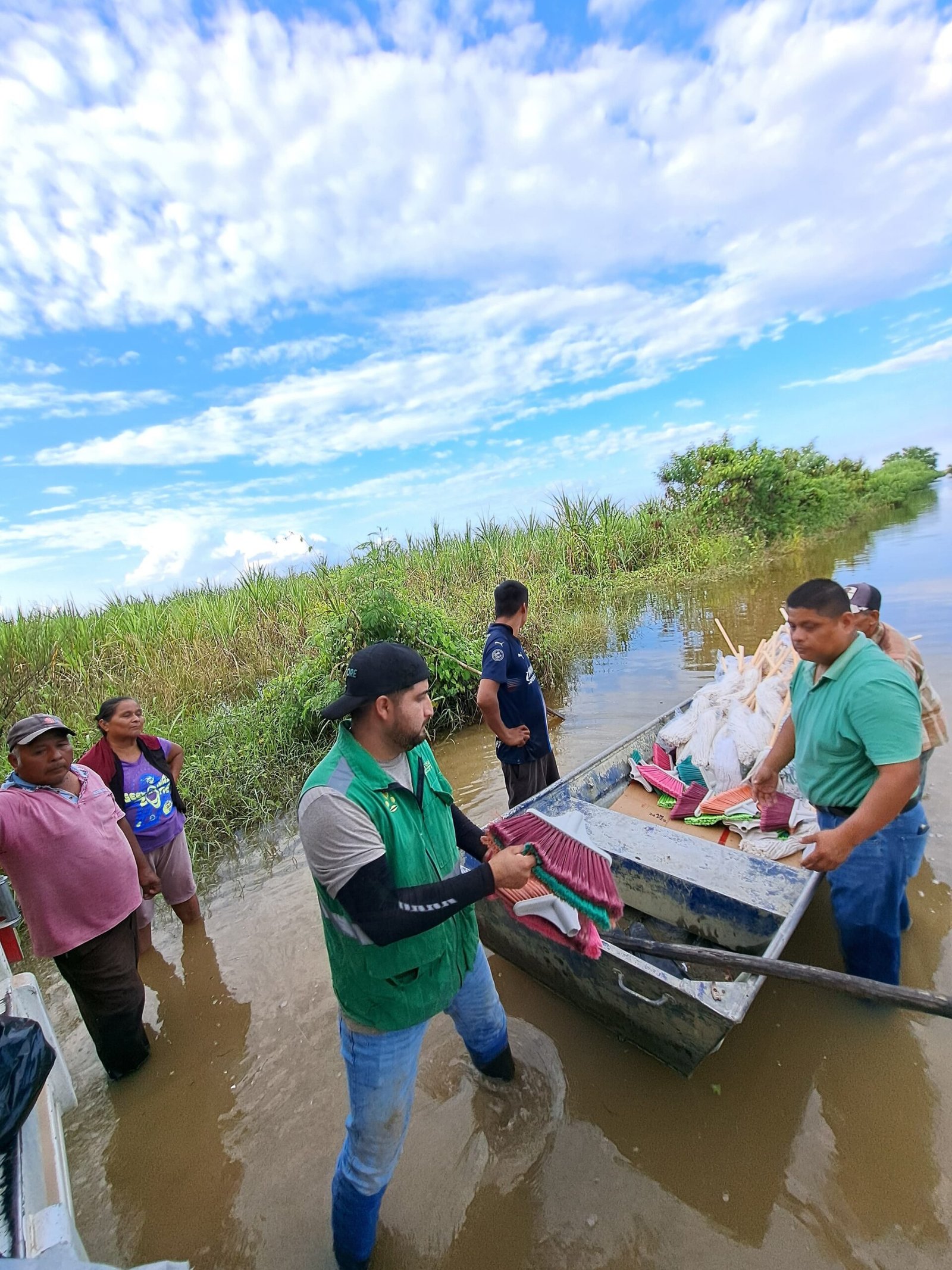 De manera conjunta atendieron en Talanjás a las comunidades San José del Tinto y San Benito que se encontraban incomunicadas, donde las familias recibieron insumos, alimentos y kits de limpieza.
