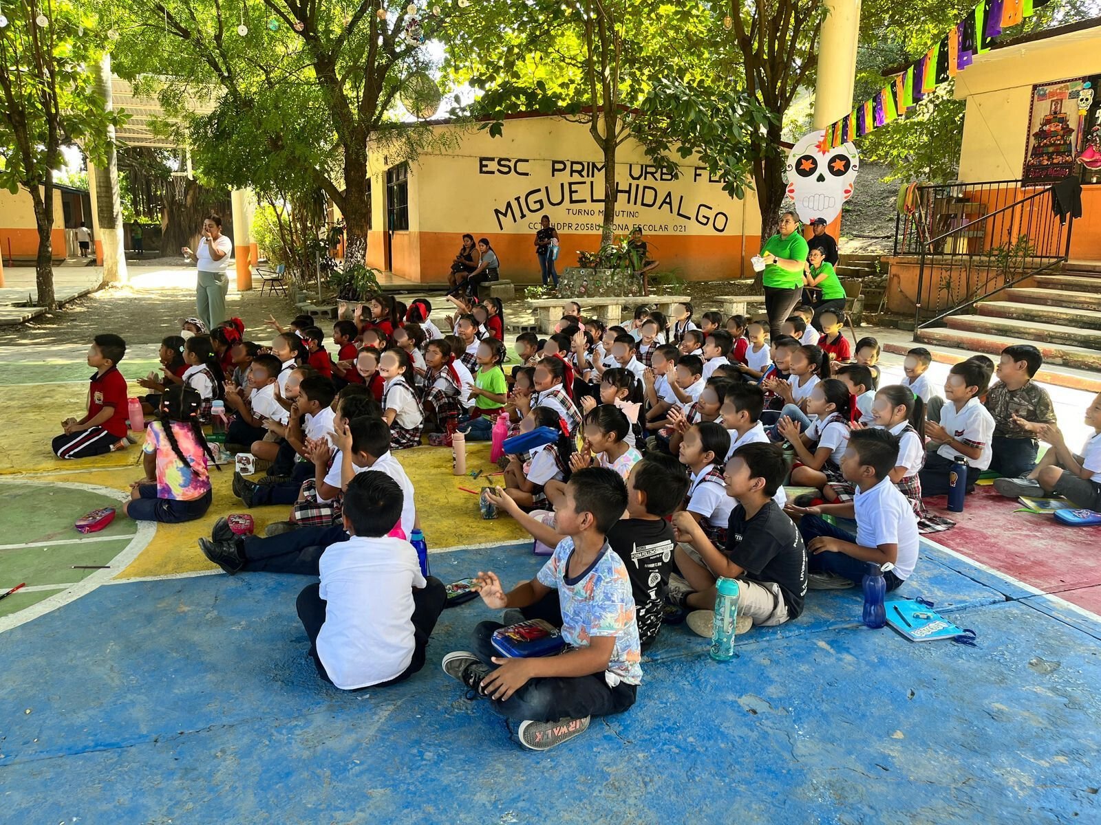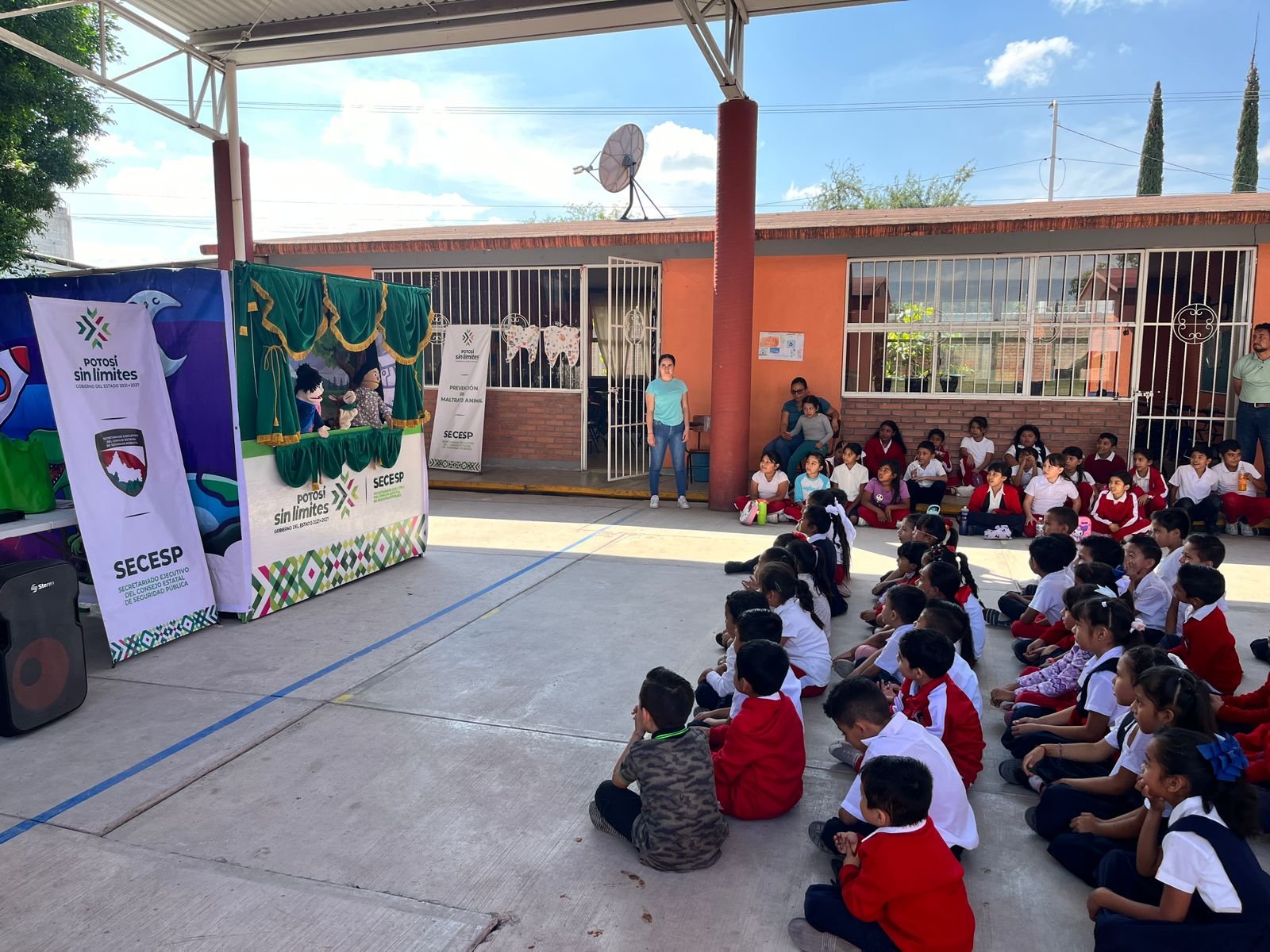 Personal especializado visitó recientemente los municipios de Aquismón, Ciudad Fernández y Matehuala, donde se realizaron actividades en las escuelas primarias Miguel Hidalgo, Juan Miranda Uresti y telesecundaria Vicente Guerrero. En cada plantel se presentó la obra de teatro guiñol “Huellitas con derechos” y se promovió el respeto y cuidado hacia los animales entre niñas, niños y adolescentes de las regiones Media y Altiplano.