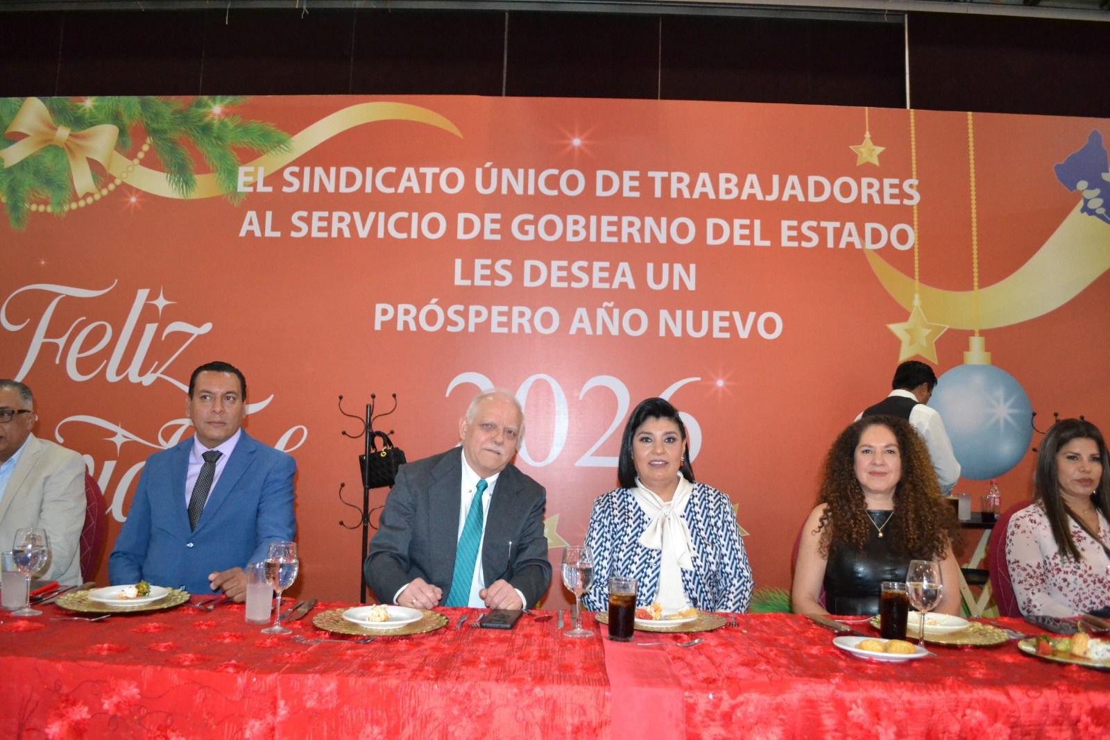 La Oficialía Mayor reafirmó su compromiso con la base trabajadora durante la posada navideña del Sindicato Único de Trabajadores al Servicio del Gobierno del Estado (SUTSGE). En el encuentro se reconoció la dedicación y el esfuerzo de quienes integran la plantilla laboral, subrayando la importancia de mantener un diálogo cercano y permanente para fortalecer el apoyo institucional hacia las y los trabajadores.