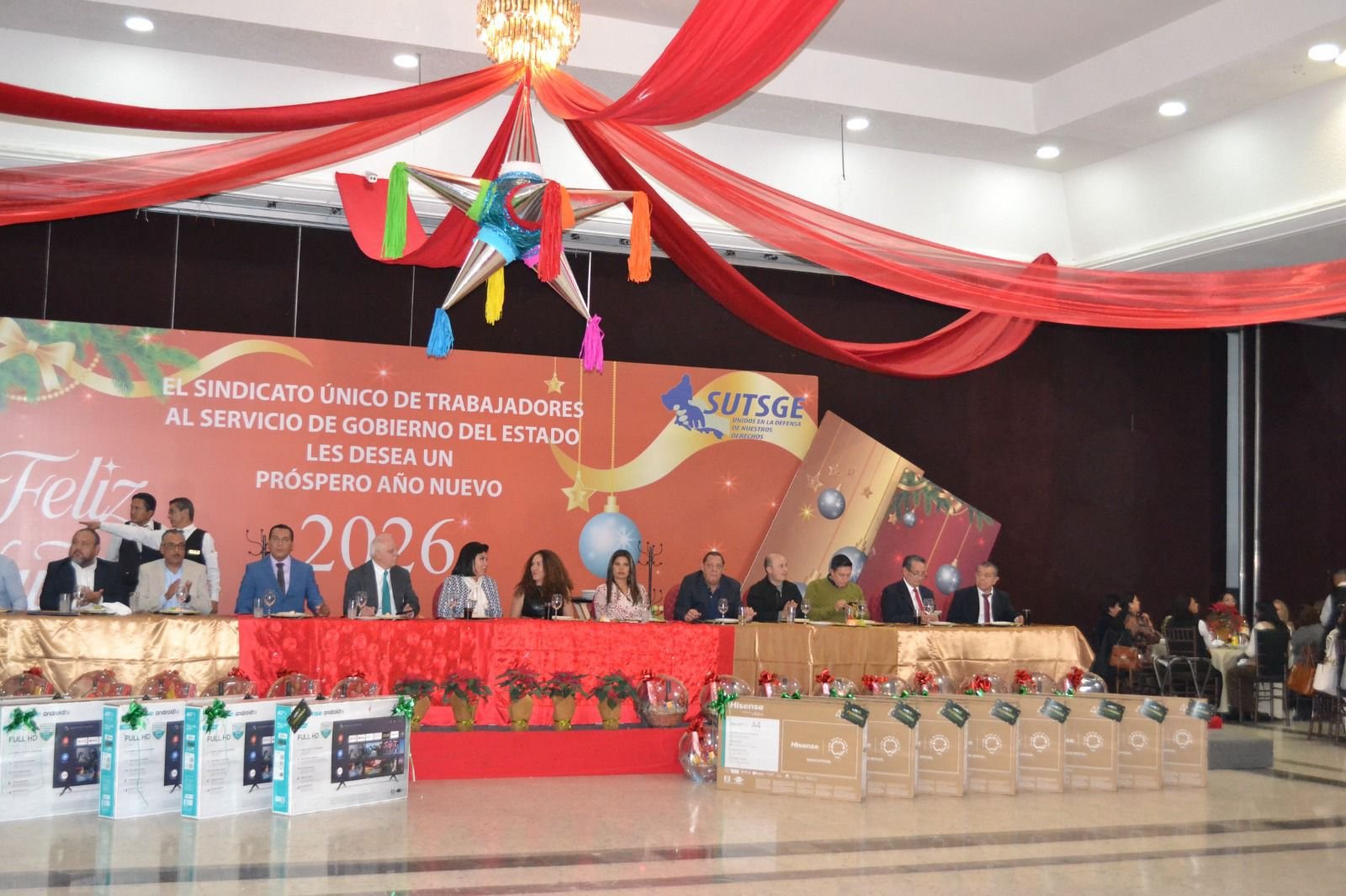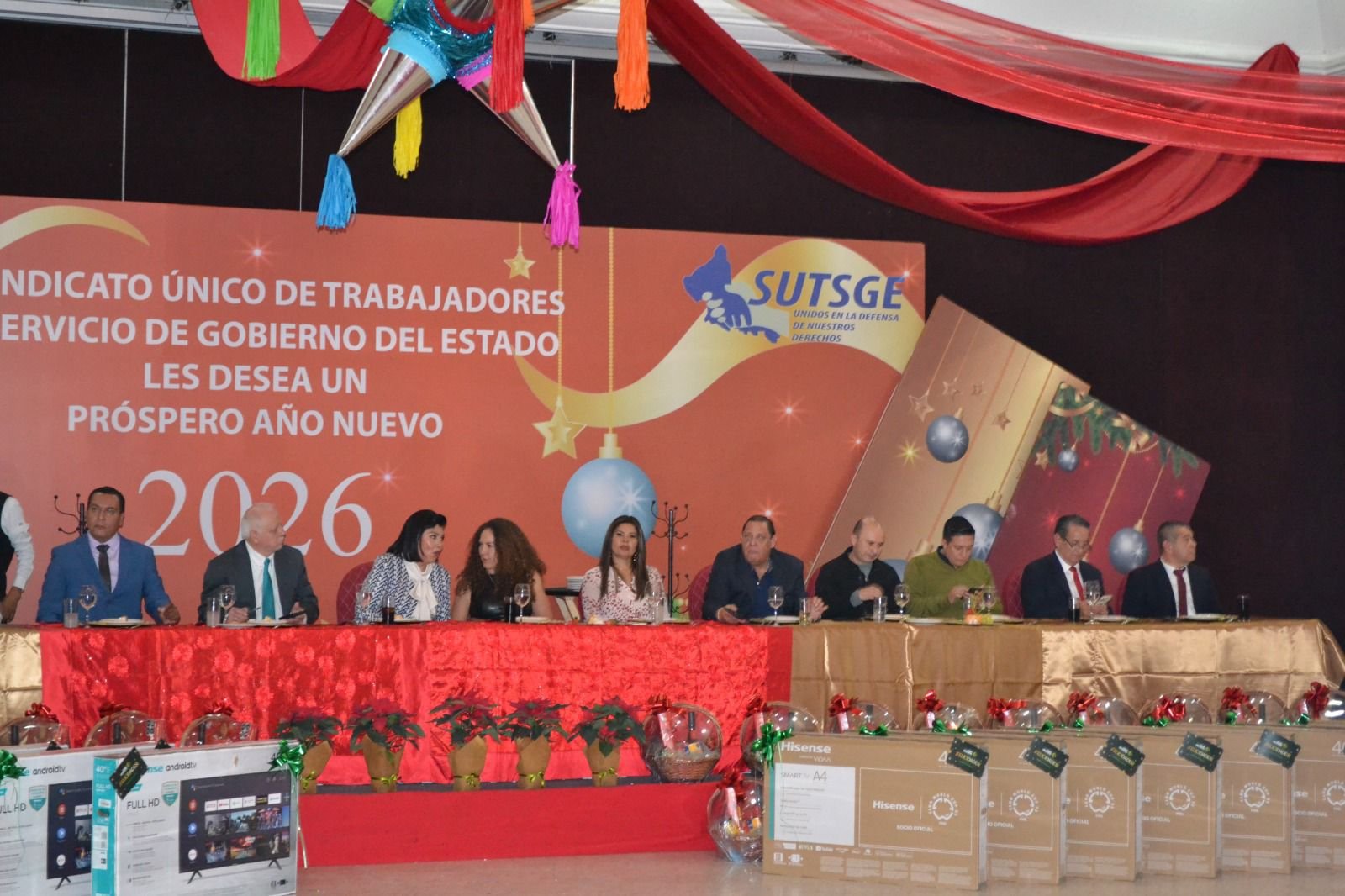 La Oficialía Mayor reafirmó su compromiso con la base trabajadora durante la posada navideña del Sindicato Único de Trabajadores al Servicio del Gobierno del Estado (SUTSGE). En el encuentro se reconoció la dedicación y el esfuerzo de quienes integran la plantilla laboral, subrayando la importancia de mantener un diálogo cercano y permanente para fortalecer el apoyo institucional hacia las y los trabajadores.
