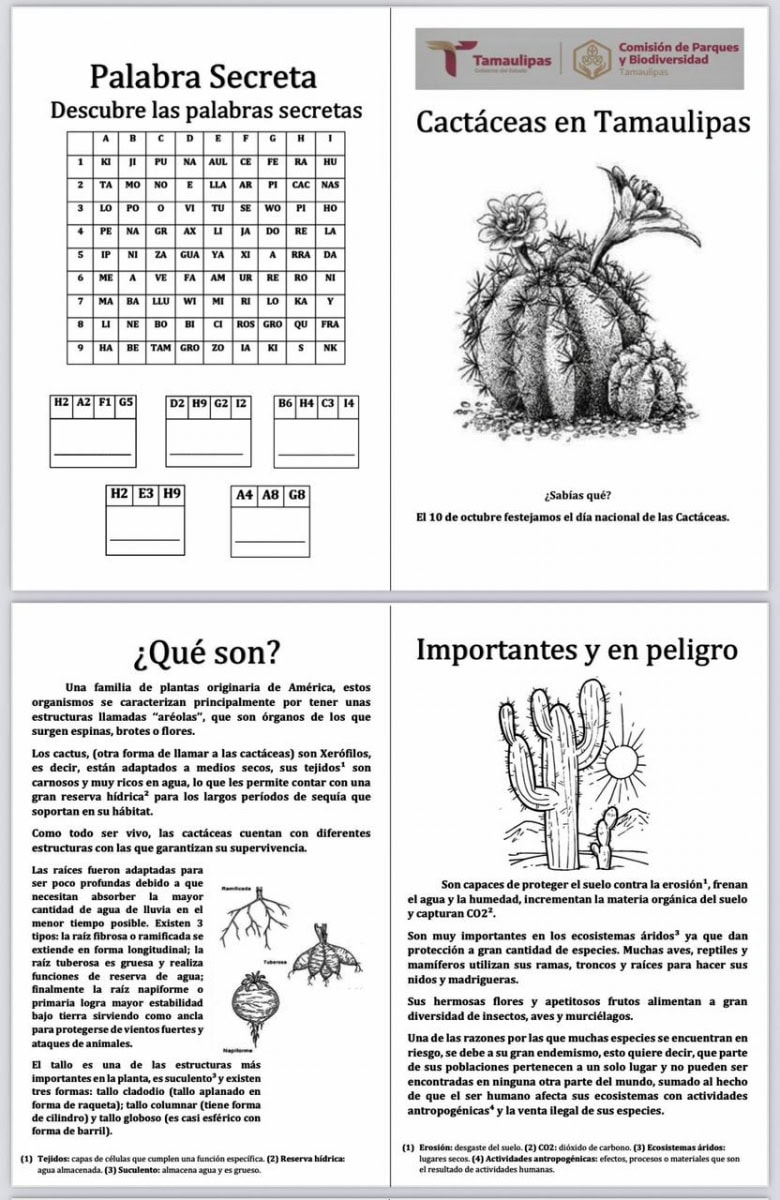 Octubre 23 de 2025 Ciudad Victoria, Tamaulipas.- Para conocer más del emblemático jaguar, el oso negro americano, la guacamaya verde, entre otra fauna silvestre y flora, así como su conservación, la Comisión de Parques y Biodiversidad de Tamaulipas (CPBT) invita a visitar su sitio web. Ahí, encontrarán material didáctico de la biodiversidad de Tamaulipas, un estado con una gran riqueza en flora y fauna, informó Eduardo Rocha Orozco, vocal de la Comisión de Parques. En la página de la Comisión podrán encontrar cuadernillos de cactáceas, del cocodrilo de pantano, colibrí, de los felinos que habitan en Tamaulipas, de la guacamaya verde, del jaguar, del lobo gris, del oso negro americano, entre otras especies más. “Fomentamos la educación ambiental en las nuevas generaciones con material didáctico práctico y de lectura ágil, que destaca la descripción de especies locales y sus características esenciales”, explicó el funcionario estatal. Refirió que a través de esta iniciativa, se promueve una conciencia activa sobre el cuidado ambiental que Tamaulipas necesita, garantizando un desarrollo sostenible y el bienestar de nuestro entorno. Concluyó que la descarga de los cuadernillos se encuentra disponible en el link: https://www.tamaulipas.gob.mx/parquesybiodiversidad/material-didáctico/