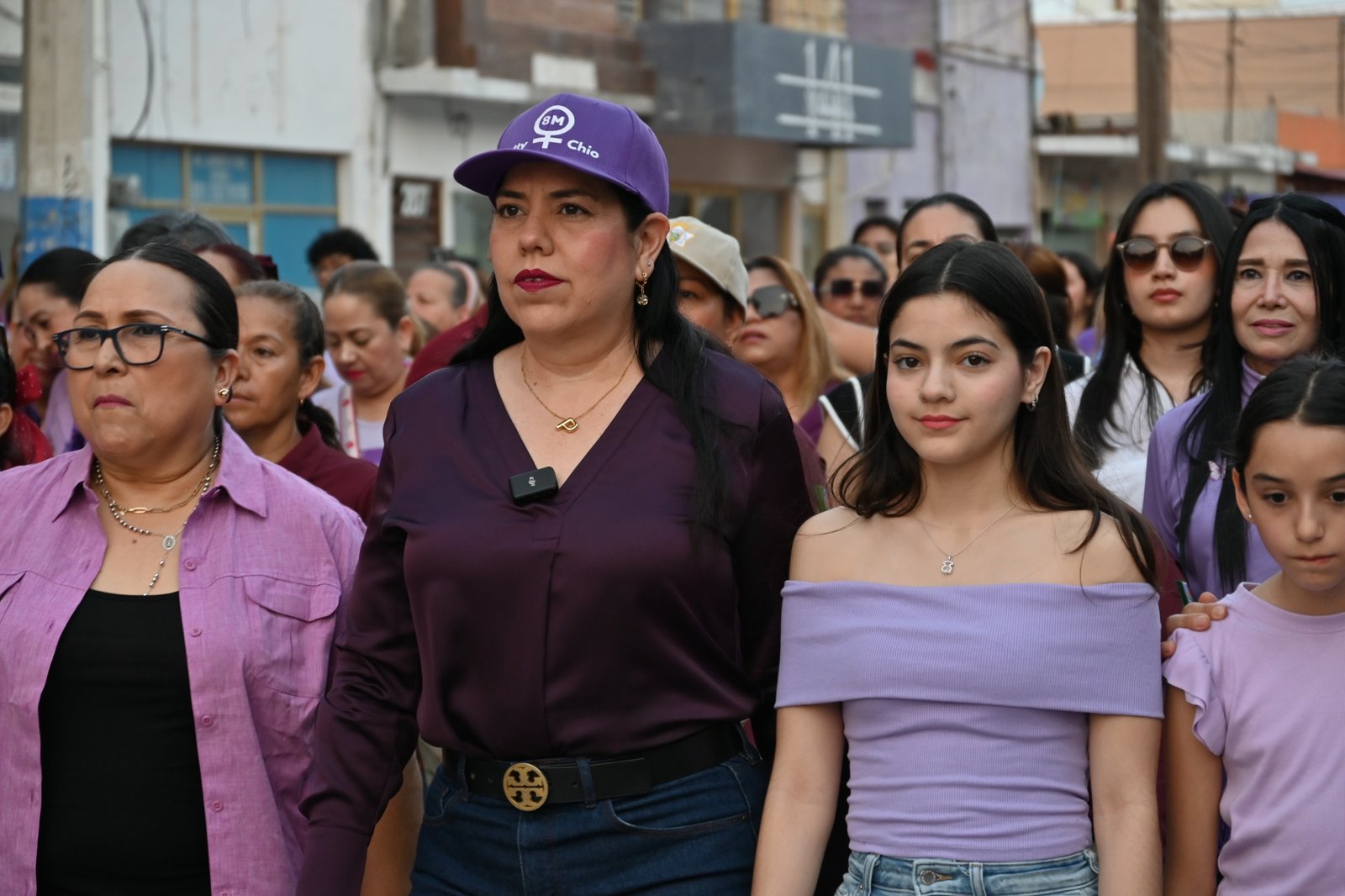 Mujeres de todas las edades y sectores sociales encabezadas por la Alcaldesa Patty Chío, se unieron a la marcha que a su paso transformó las calles en un espacio de reflexión y exigencia de derechos.