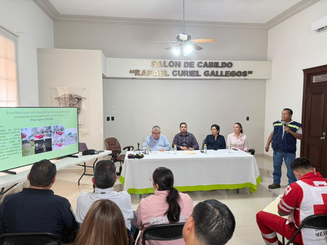 La sesión fue presidida por el Secretario General del Ayuntamiento, Luis Ángel Contreras Malibrán; el Regidor Jorge Martínez Flores; el Director de Protección Civil Municipal, Miguel Ángel Sánchez Hernández; la Tesorera Municipal, Ma. Anel Coronado Aguilar; y la Directora del SMDIF, Bettina López Fernández, contando además con la participación de las y los integrantes del Consejo.