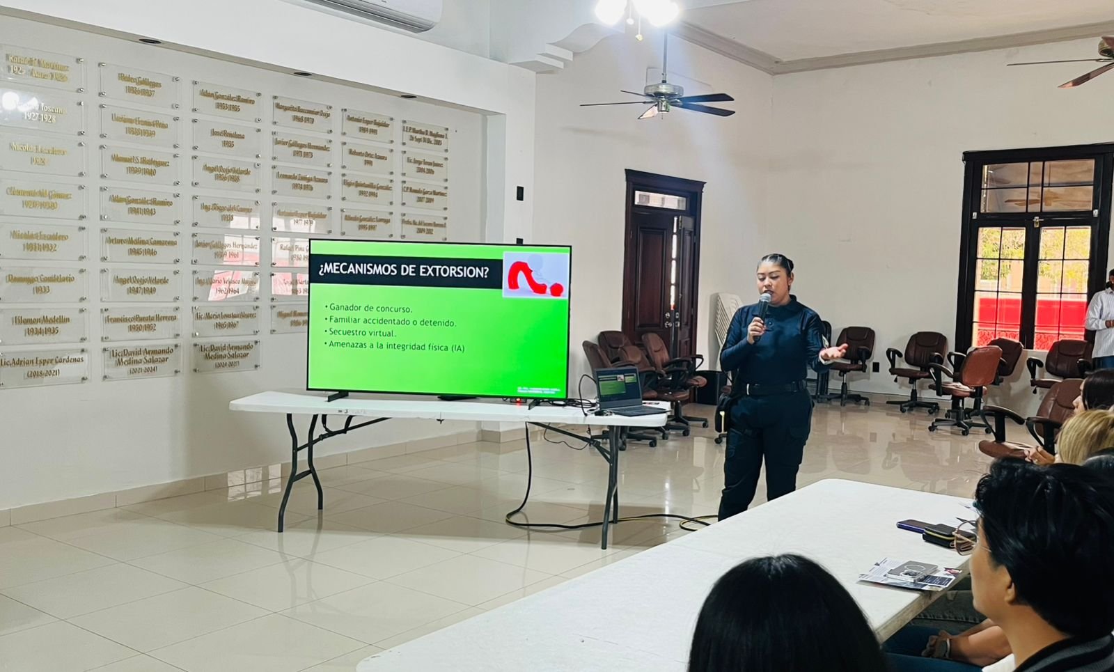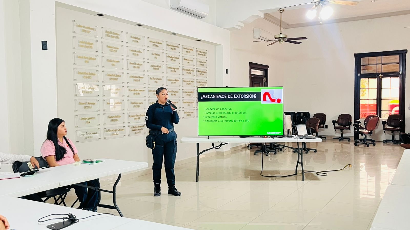 La actividad fue impartida por Jaqueline Muro Varela, del Área de Prevención del Delito de la Dirección de Seguridad Pública y Tránsito Municipal, con el objetivo de prevenir que los prestadores de servicios sean víctimas de este delito, brindándoles herramientas e información sobre las distintas modalidades de extorsión y las medidas de protección que deben adoptar.
