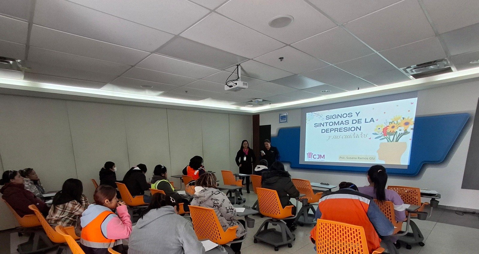 Con el respaldo del Gobernador Ricardo Gallardo Cardona, personal de Psicología y Empoderamiento del Centro de Justicia para las Mujeres (CJM) impartió una jornada preventiva sobre salud mental en la empresa General Motors Planta San Luis Potosí. La plática “Signos y síntomas de la depresión y sus cuidados” explicó a colaboradoras y colaboradores cómo identificar esta condición, sus manifestaciones más comunes y la importancia del autocuidado emocional y la atención especializada oportuna.