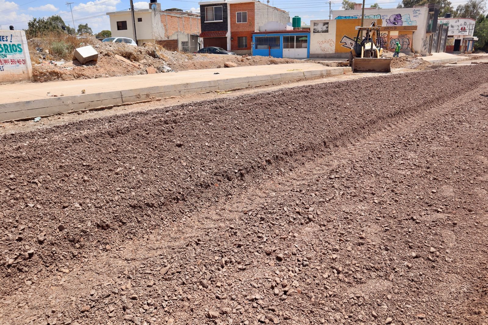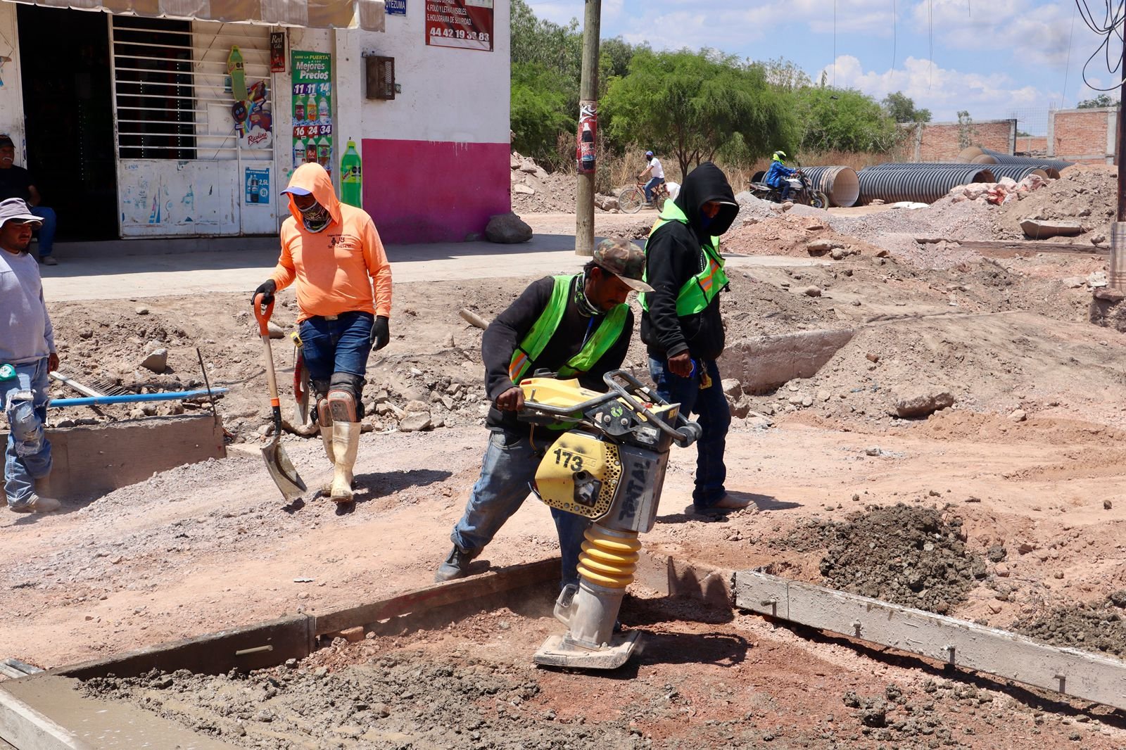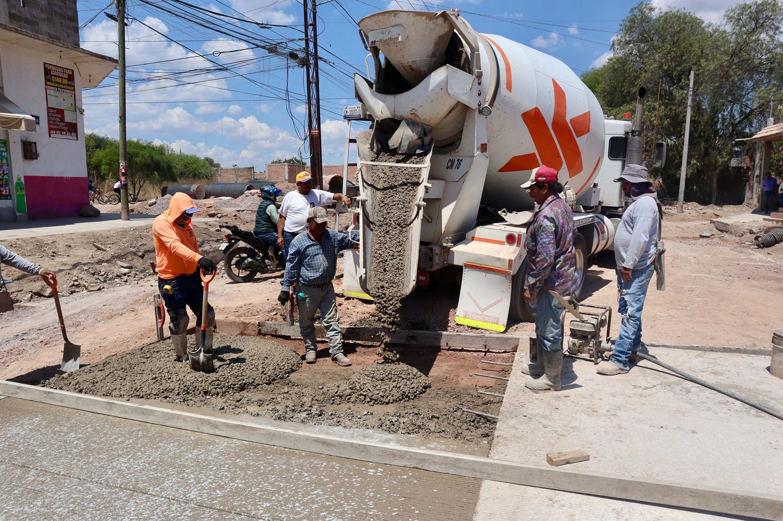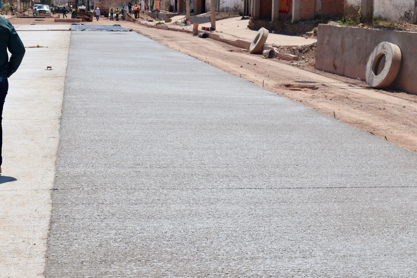 El Gobierno del Estado realiza el colado de pavimento, trabajos de base y compactación e infraestructura hidráulica para mejorar la movilidad en la zona.