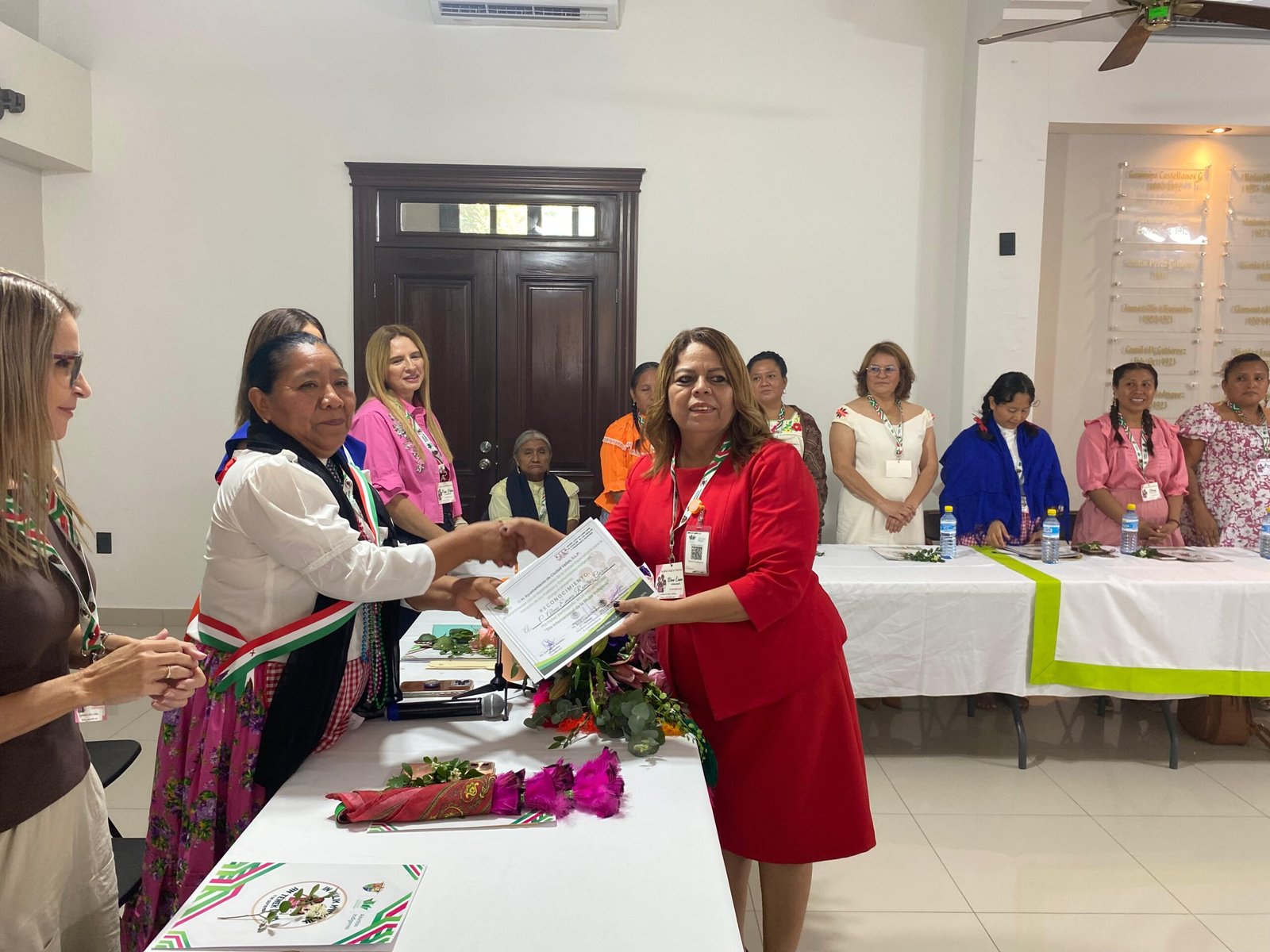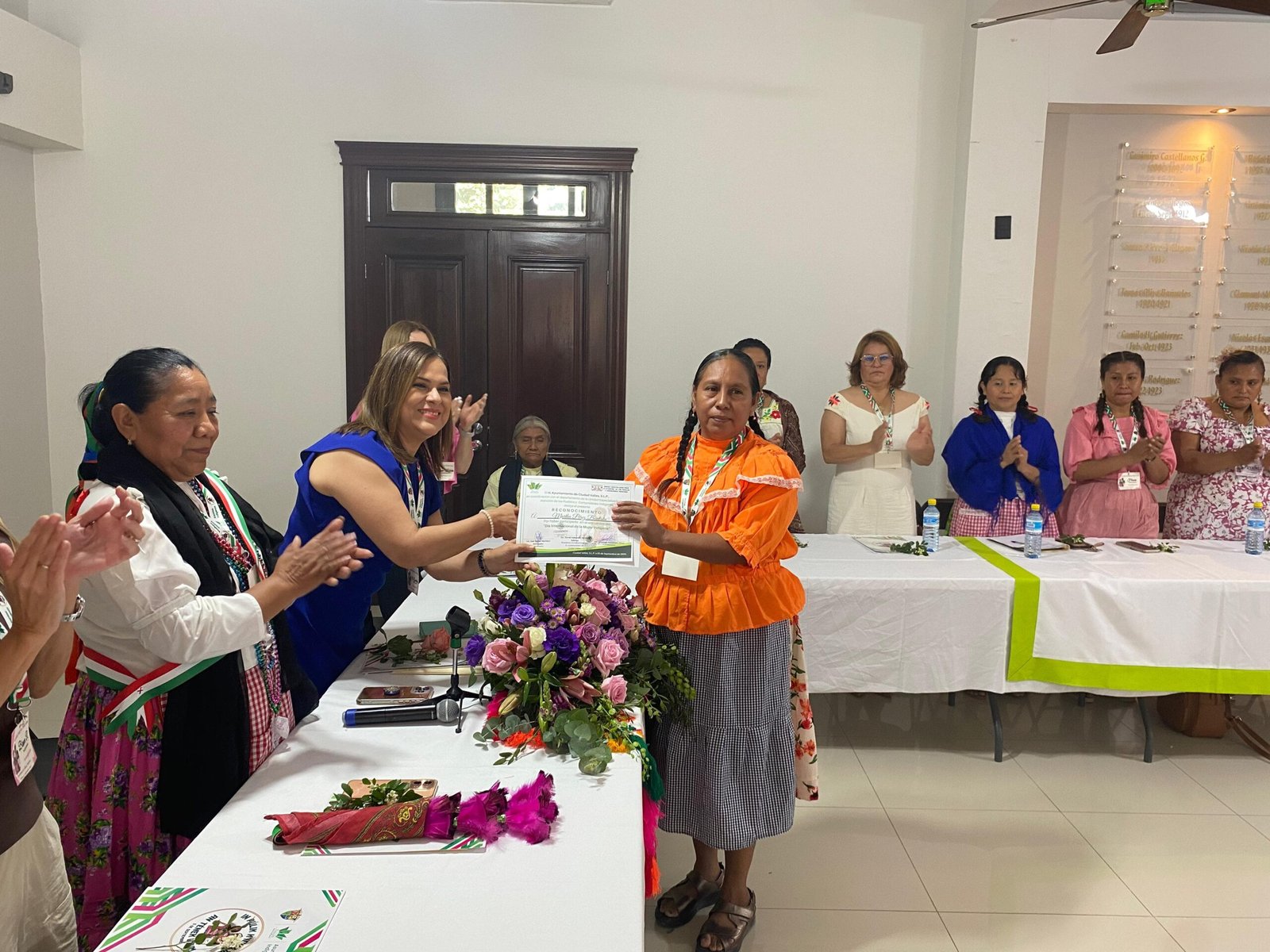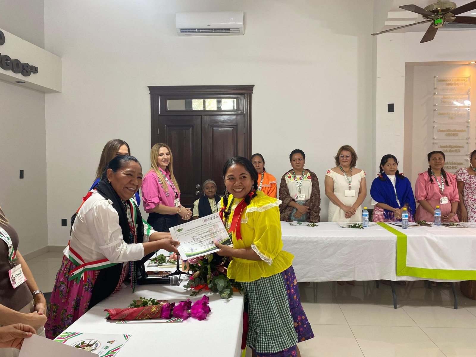Asimismo, se entregaron reconocimientos a las mujeres participantes, quienes también tuvieron espacios de expresión para compartir mensajes en su lengua materna. En este marco, mujeres líderes de sus comunidades de la cordillera tének participaron activamente, reafirmando la importancia de su papel en la preservación de la identidad y la cultura indígena.