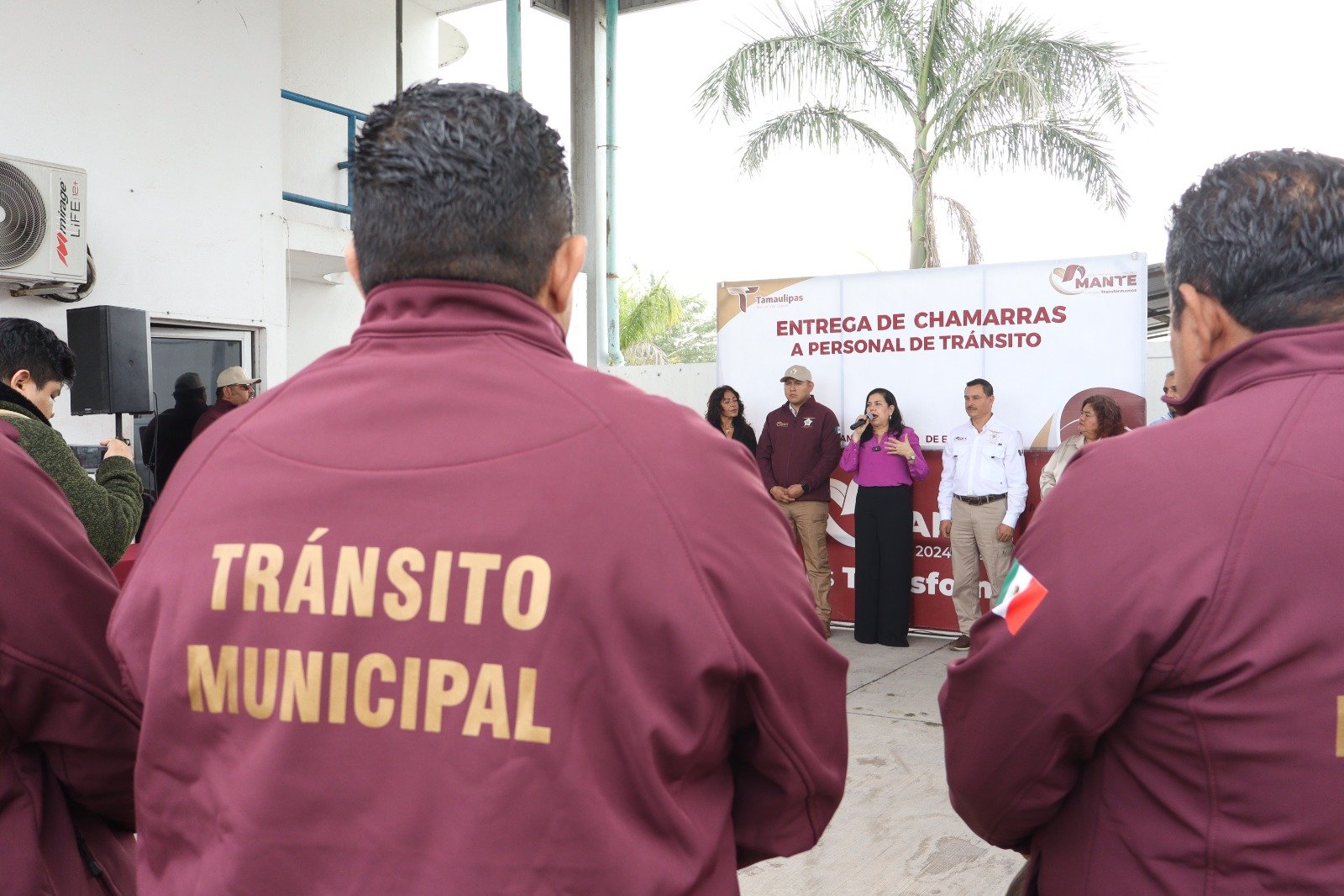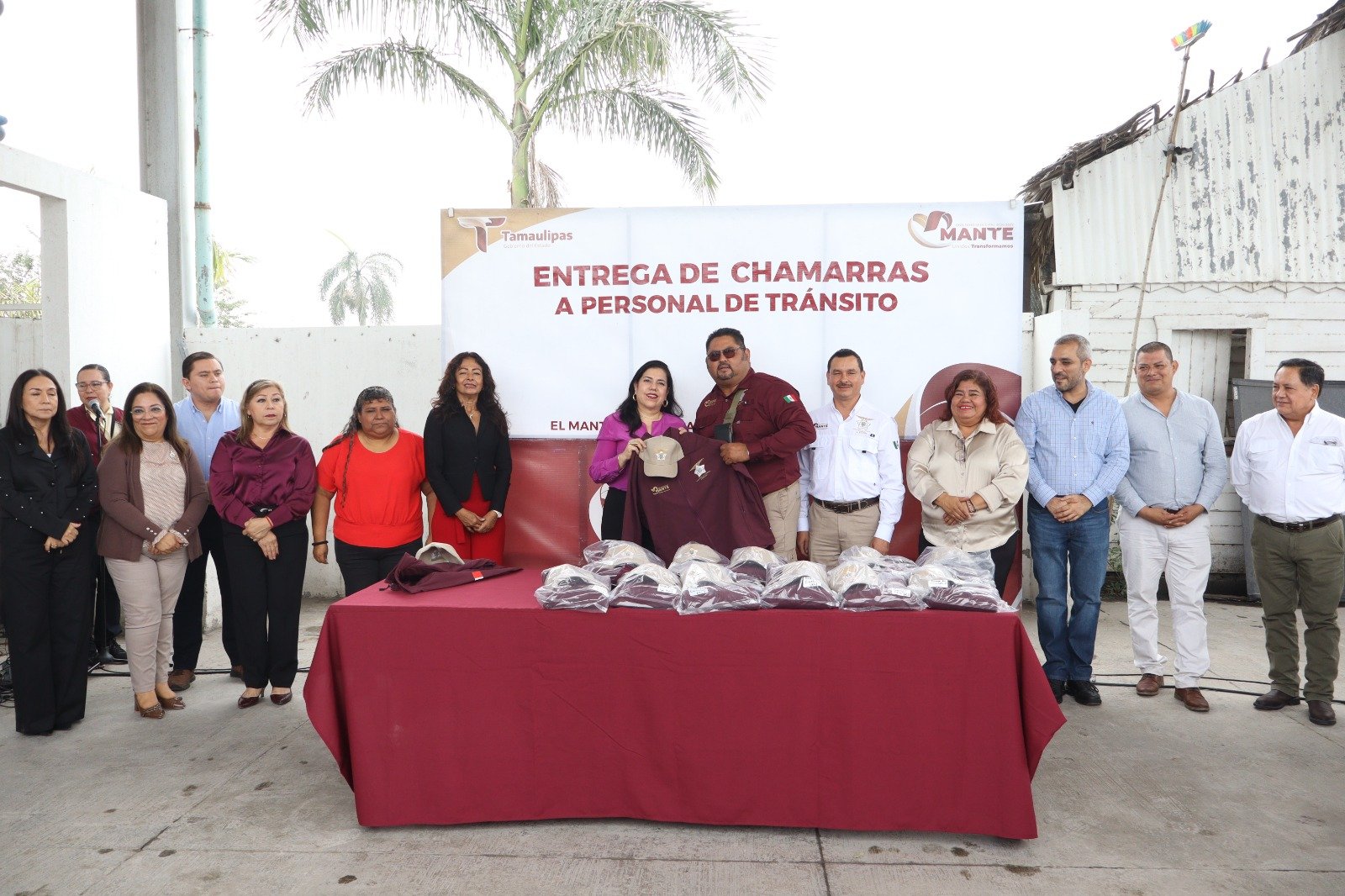 El Gobierno Municipal de El Mante realizó la entrega de chamarras y gorras a elementos de la Dirección de Tránsito Local, continuando con el equipamiento personal, con el objetivo de que puedan hacer frente a la temporada invernal y desempeñar sus funciones en mejores condiciones de seguridad y protección.