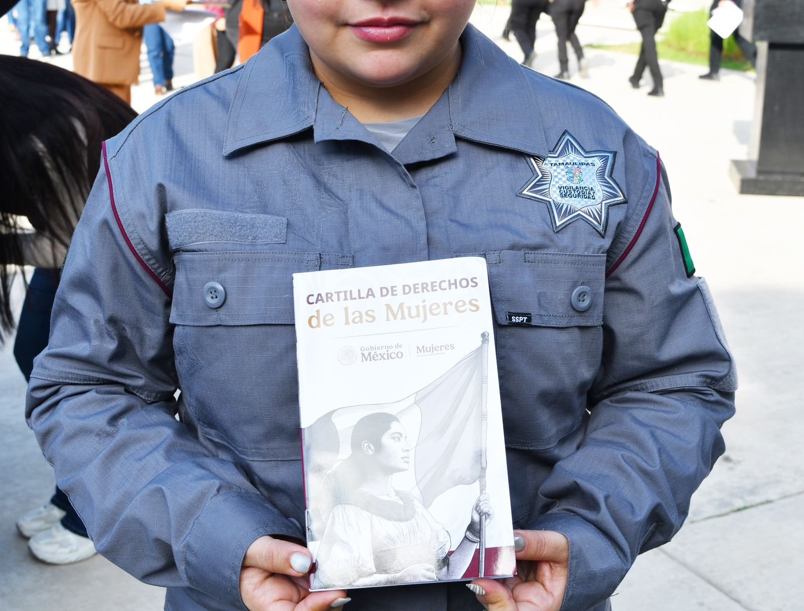 Diciembre 20 de 2025 Ciudad Victoria, Tamaulipas.- Al ser la Secretaría de Seguridad Pública de Tamaulipas (SSPT) una de las dependencias integrantes del Sistema Estatal para la Igualdad entre Mujeres y Hombres, alrededor de 720 Cartillas de Derechos de las Mujeres expedidas por la Secretaría de las Mujeres del Gobierno de México fueron entregadas a personal femenino del área operativa y administrativa. “Esta cartilla de Derechos de las Mujeres pues incluso están previstos en nuestra Constitución, son derechos como a la educación, a cuestiones cívicas, a una cultura, a la salud”, manifestó la coordinadora general Jurídica y de Transparencia, Carolina González Maldonado. Reiteró, que la SSPT cuenta con un departamento de equidad de género, la cual depende de la Dirección de lo Normativo de la coordinación a su cargo, misma que tiene la encomienda de atender todas aquellas situaciones en las que las mujeres sientan que sus derechos han sido vulnerados; asimismo, enfatizó que la dependencia prevé dos compromisos relacionados con esta materia en su Código de Conducta, el cual fue dado a conocer en la totalidad del personal. “Será esta unidad, la que detecte y canalice de acuerdo a las circunstancias que se presenten, canalizarlo a la unidad de a la unidad de Ética, Conducta o bien Asuntos Internos, o a donde proceda; de igual manera, existe personal de Psicología, capacitado para atender estas necesidades”, declaró. Asimismo, indicó, por instrucciones del secretario de Seguridad Pública de Tamaulipas, Carlos Arturo Pancardo Escudero, para el 2026 se tiene contemplada una calendarización de diferentes cursos relacionados con esta materia para capacitar y concientizar al personal.