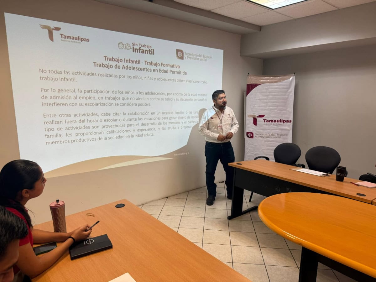 Octubre 07 de 2025 Ciudad Victoria, Tamaulipas.- La Secretaría del Trabajo y Previsión Social de Tamaulipas (STPS) llevó a cabo una jornada informativa dirigida al personal administrativo y de ventas de Nissan Victoria, con el objetivo de reforzar la erradicación del trabajo infantil y garantizar los derechos de los adolescentes trabajadores en edad permitida. Durante estas sesiones se destacó la importancia de que las empresas apliquen prácticas responsables que protejan la integridad de niñas, niños y adolescentes, asegurando que las condiciones laborales respeten la normativa vigente, contemplen jornadas adecuadas y promuevan su desarrollo educativo y personal. Bajo el liderazgo del secretario del Trabajo y Previsión Social, Luis Gerardo Illoldi Reyes, la dependencia reafirma su compromiso con la promoción de una cultura laboral responsable que prioriza el bienestar de las y los trabajadores más jóvenes. Estas acciones forman parte de la labor que impulsa la Dirección de Inspección y Previsión Social de la STPS, encabezada por Claudia Yazmín Villarreal Vázquez, la cual trabaja de manera permanente para prevenir la explotación laboral infantil y supervisar que los entornos de trabajo sean seguros, éticos y acordes a la edad de los menores. La jornada, que contó con la participación de Nelly Esmeralda González González y Rafael Laddaga Cura, auxiliares del Departamento de Trabajo de Menores de la Dirección de Inspección y Previsión Social, brindó herramientas a los asistentes para prevenir riesgos laborales, proteger la integridad física y emocional de los menores y garantizar el cumplimiento de la legislación vigente en materia laboral. La funcionaria señaló que el Gobierno Humanista y de la Transformación de Tamaulipas, que encabeza el gobernador Américo Villarreal Anaya, continúa impulsando políticas públicas que protegen a la niñez y adolescencia, fomentando espacios laborales justos, seguros y que contribuyen al desarrollo integral de las nuevas generaciones.