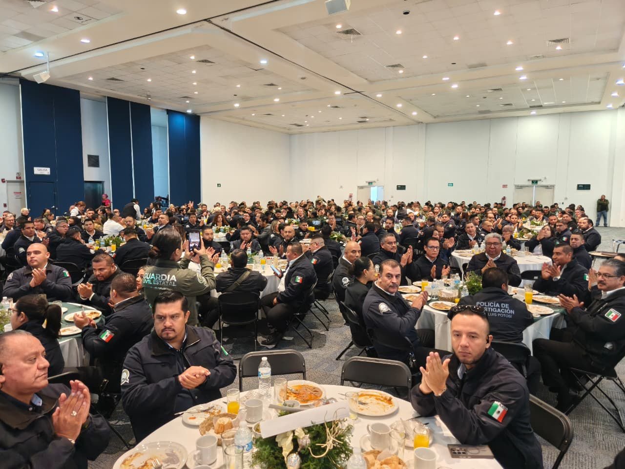 En el marco del “Día del Policía”, Ricardo Gallardo convivió con agentes de la Guardia Civil Estatal, compartiéndoles que les aumentará el sueldo desde enero próximo, otorgándoles de 3 a 5 mil pesos más a su salario base, hecho con el que reconoce su dedicación para proteger la vida, el patrimonio, la tranquilidad y la paz de las y los potosinos.