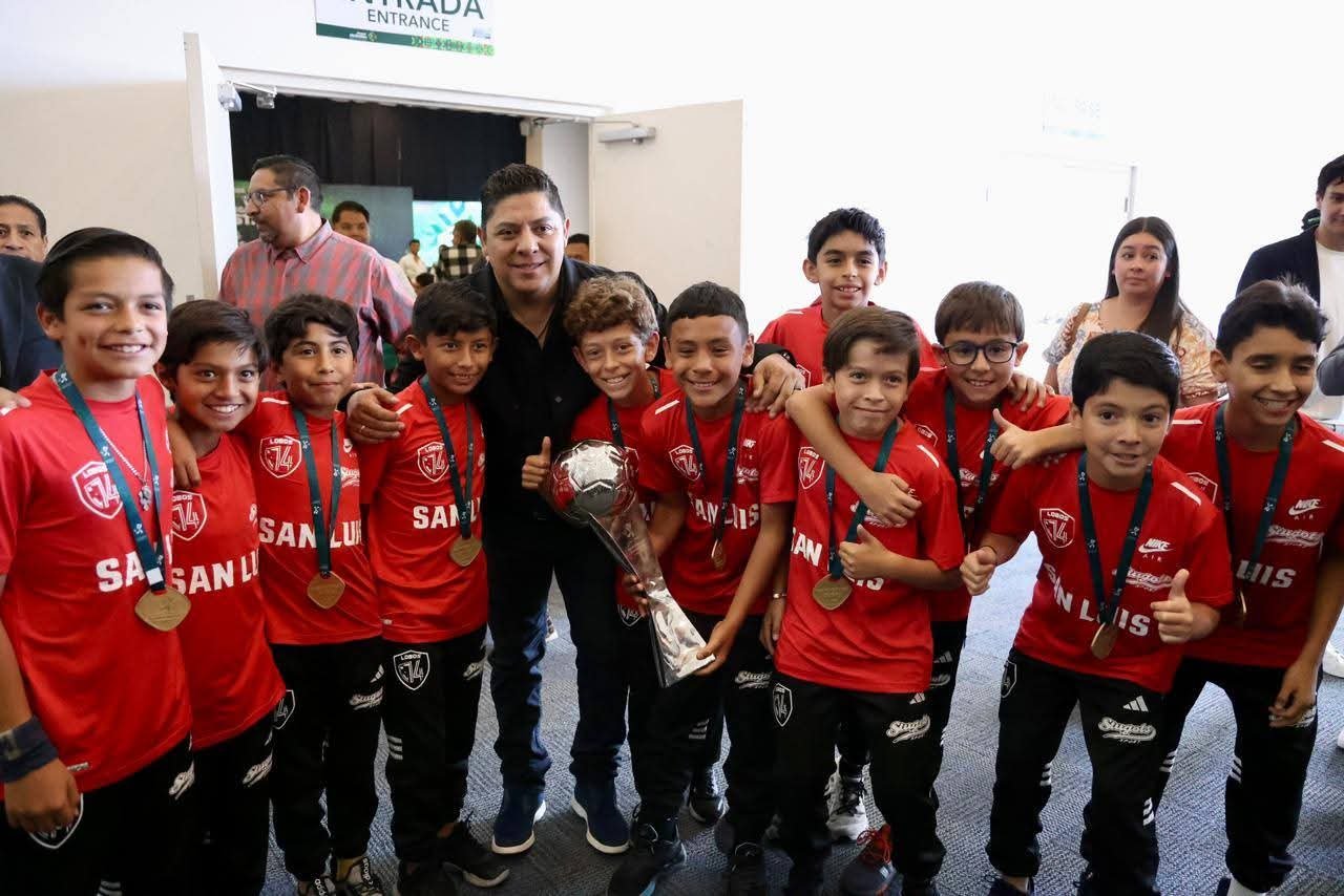 Finalmente, Ricardo Gallardo Cardona reconoce el esfuerzo y la dedicación de las y los deportistas potosinos mediante la entrega de premios y estímulos económicos a quienes obtienen triunfos en competencias nacionales e internacionales, incluyendo atletas y paratletas, lo que incentiva la continuidad de sus carreras y motiva a nuevas generaciones.