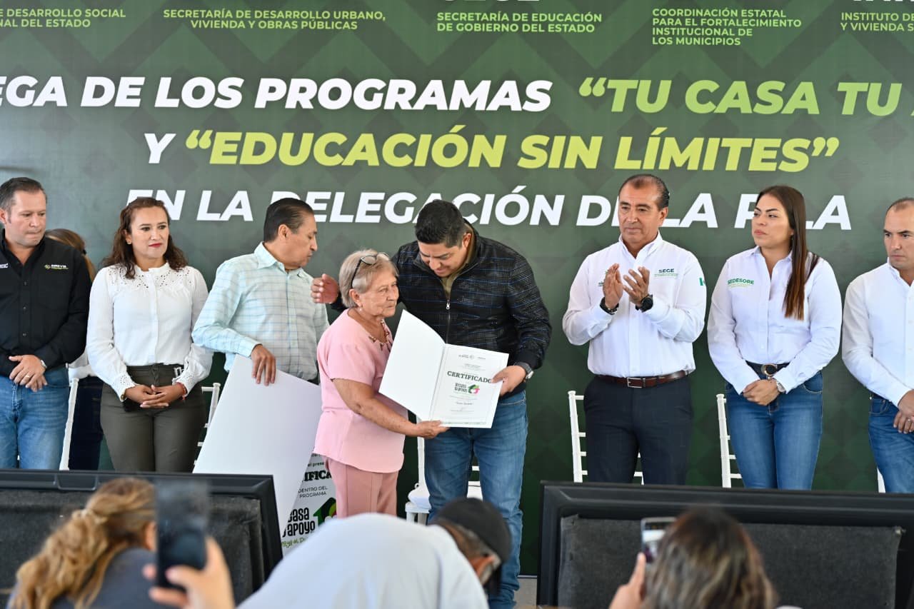 Madres solteras, personas de la tercera edad, emprendedoras y comerciantes que durante años han trabajado para lograr un patrimonio, recibieron de manos del Gobernador el título de propiedad de su nuevo lote donde muy pronto podrán construir su casa y su hogar con el apoyo sin límites del Gobierno del Estado, ya que en una segunda etapa se entregarán paquetes constructivos, para finalmente entregar las escrituras.