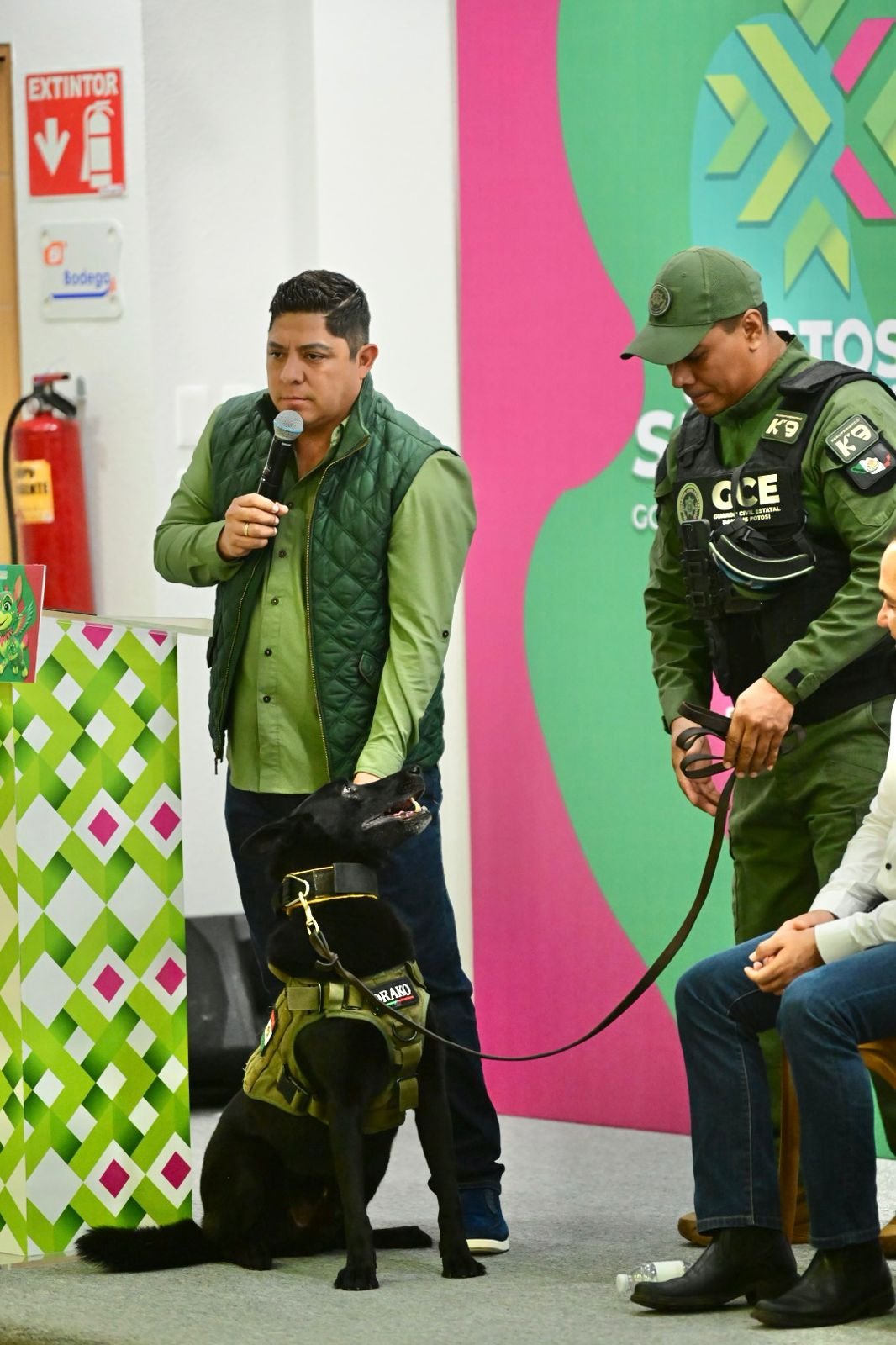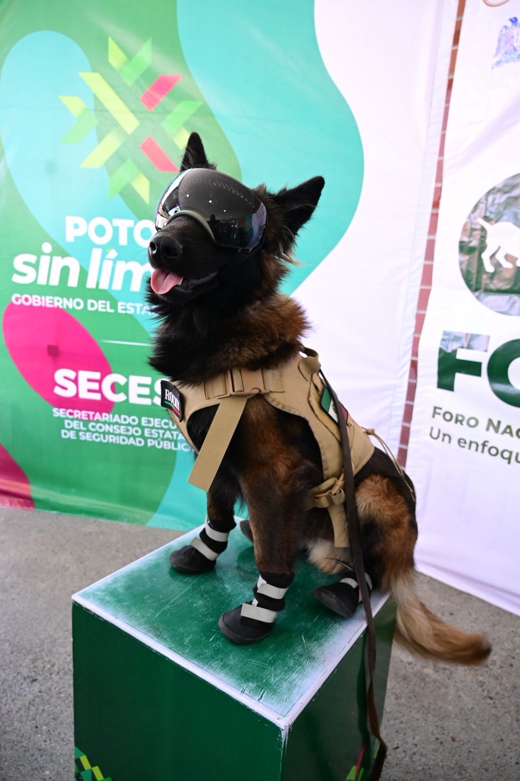 Durante la clausura del foro el Gobernador Ricardo Gallardo rindió homenaje a Drako, un pastor belga de la Unidad K9, con trabajo de proximidad social que se jubiló tras ocho años de servicio, destacando su labor y compromiso con la seguridad ciudadana.