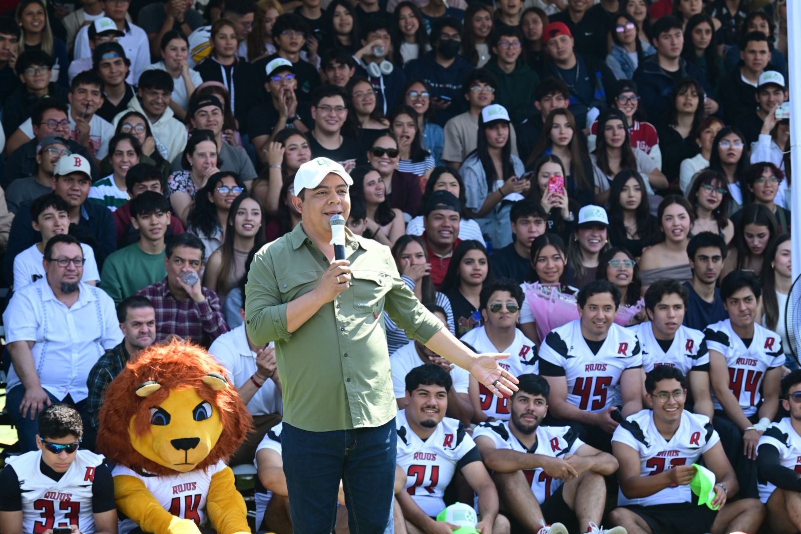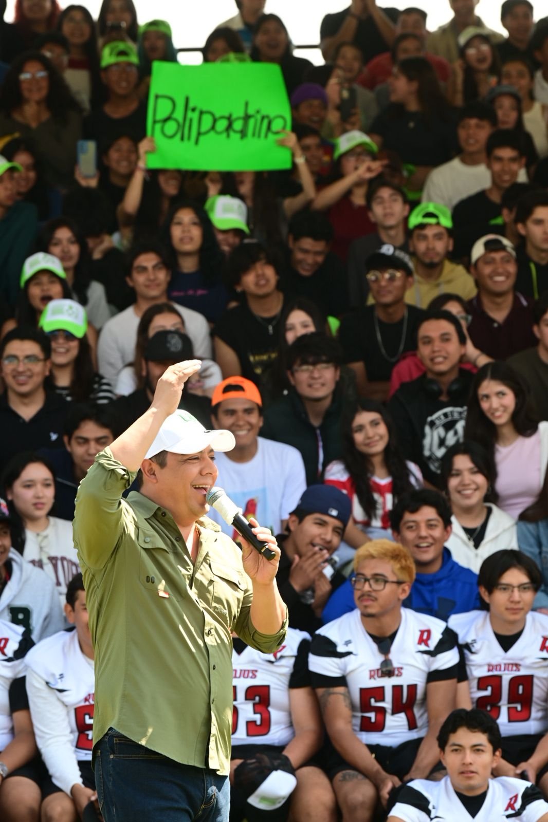 Finalmente, el Jefe de Gobierno Estatal en medio de un ambiente de fiesta estudiantil, acudió al evento del relanzamiento de la Universidad Politécnica en los campos deportivos, donde se presentó el equipo de fútbol americano y donde se dio a conocer la rehabilitación y el equipamiento de 15 laboratorios, además de la construcción de los gimnasios de pesas y multifuncional que también inauguró Ricardo Gallardo.