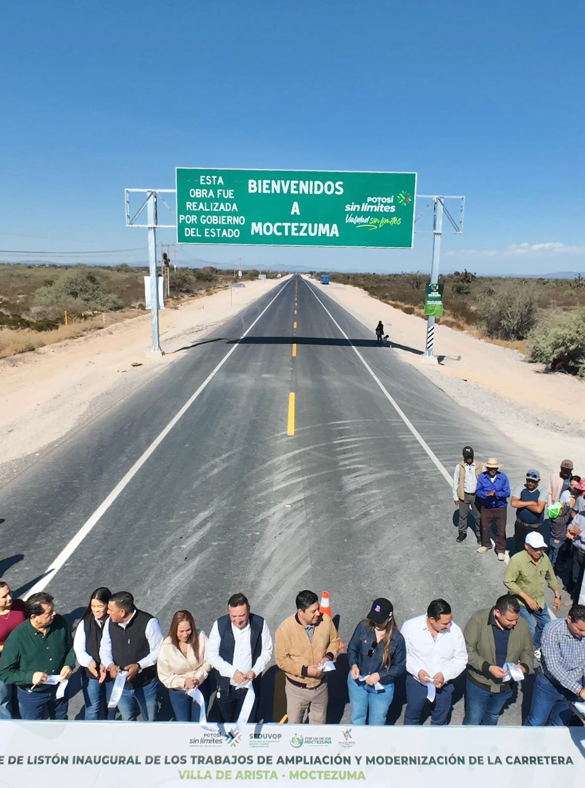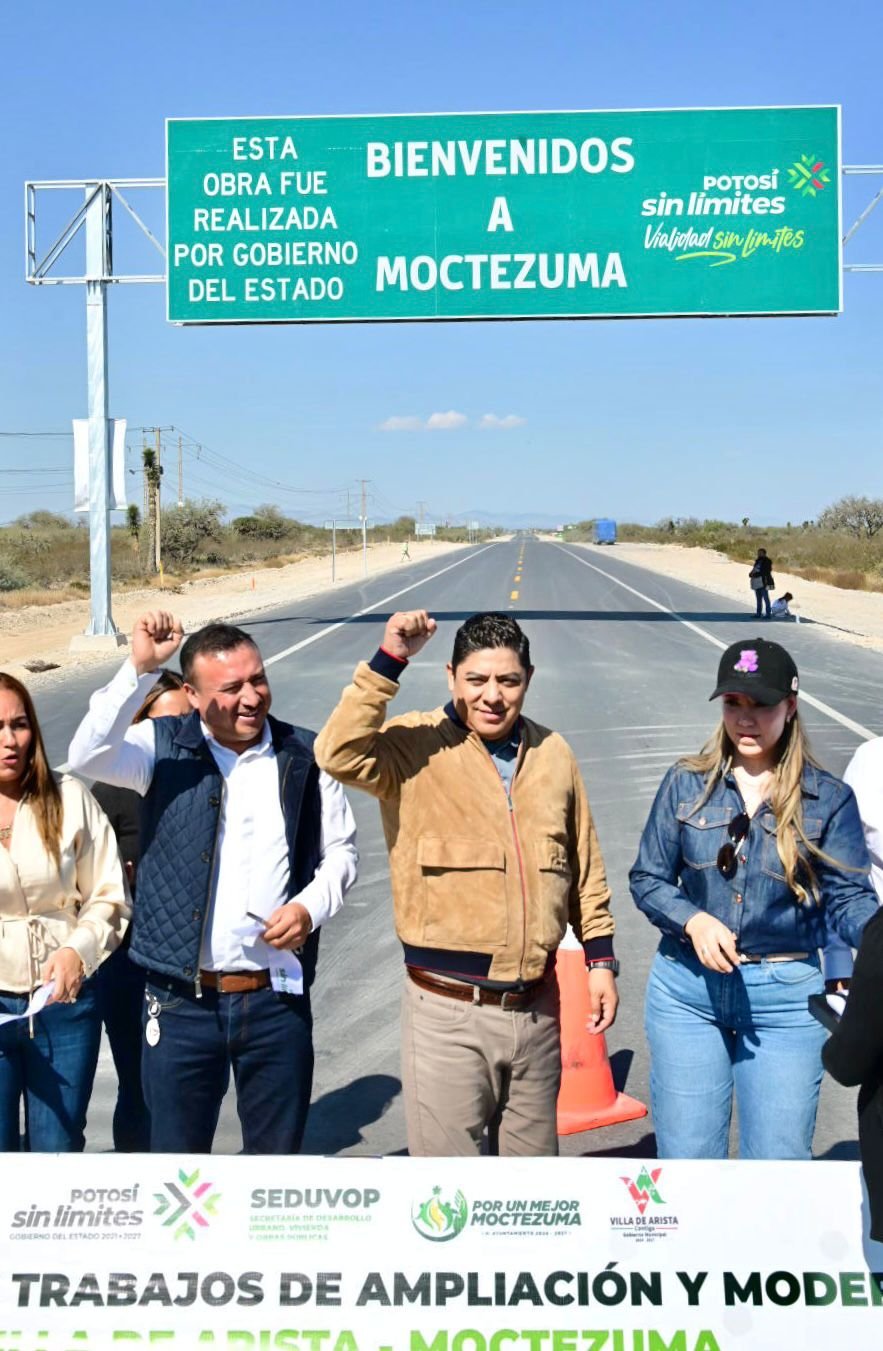 El Gobernador de San Luis Potosí Ricardo Gallardo Cardona, inauguró la ampliación y modernización de la Carretera Villa de Arista–Moctezuma, proyecto que brinda una movilidad sin límites, seguridad y ahorro en tiempos de traslados de transportistas, agricultores, estudiantes, habitantes y turistas en sus 23.4 kilómetros de longitud, dos carriles y acotamientos, cuyo monto de inversión ascendió a los 466 millones de pesos.