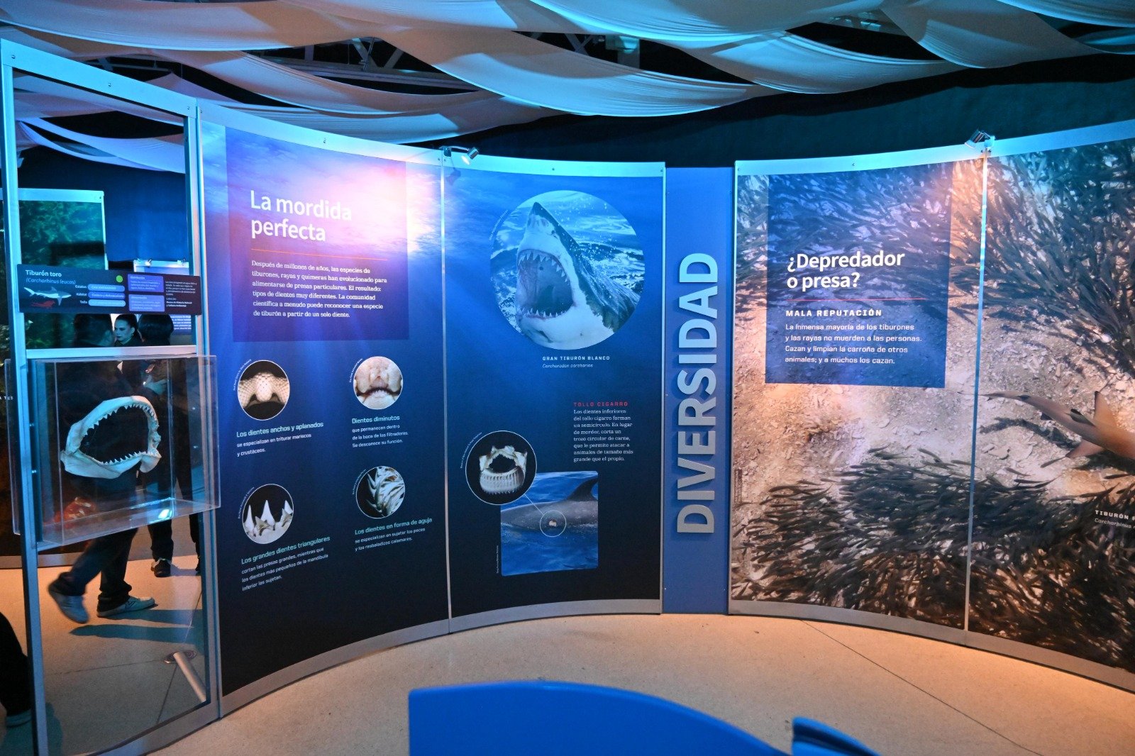 La muestra, video-fotográfica e interactiva, ofrece a la juventud, a la niñez y a las familias potosinas la oportunidad de acercarse a la ciencia y al fascinante mundo de los tiburones. La exposición ha sido presentada en importantes recintos culturales, como el Museo de Historia Natural de la Ciudad de México, y cuenta con el impulso del Museo Americano de Historia Natural de Nueva York.