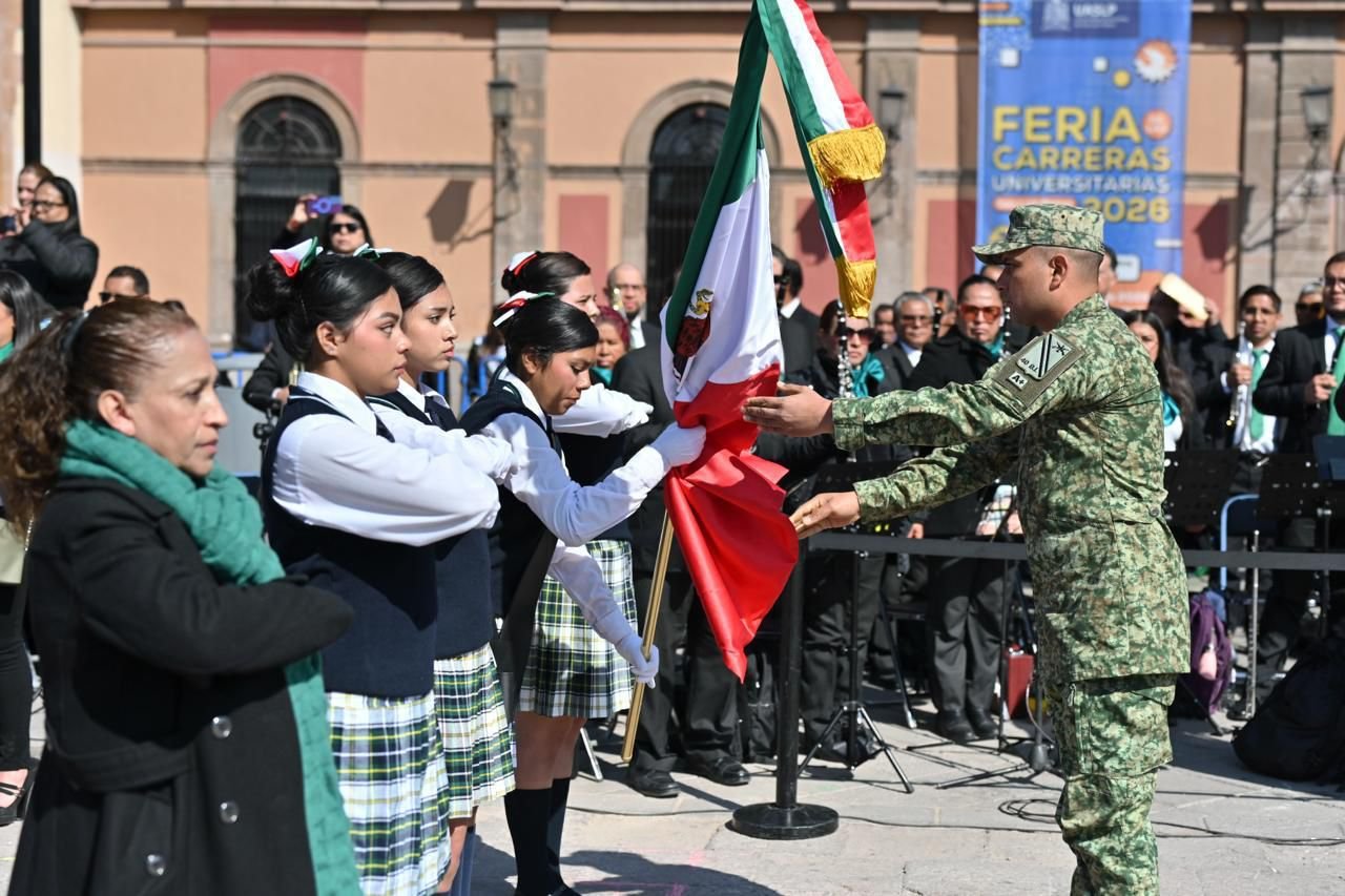 Ante la participación de diversas escuelas del nivel básico educativo, Ricardo Gallardo compartió que la bandera de México “es la representación viva de lo que somos; el verde significa la esperanza del pueblo mexicano; el blanco, la paz que tiene nuestro país, y el rojo, el sacrificio de los que nos dieron patria y libertad”, por lo que hizo el llamado a niños, niñas y jóvenes a sentirse orgullosos de ser mexicanos, de ser de San Luis Potosí y de ser el futuro de esta nación.