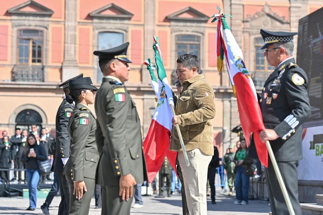 El Gobernador de San Luis Potosí, Ricardo Gallardo Cardona, conmemoró en la Plaza de los Fundadores el 24 de febrero, Día de la Bandera, en donde hizo el llamado a estudiantes, madres y padres de familia, así como a la ciudadanía, a honrar sin límites el símbolo de nuestra Patria, con respeto, orgullo e identidad nacional.