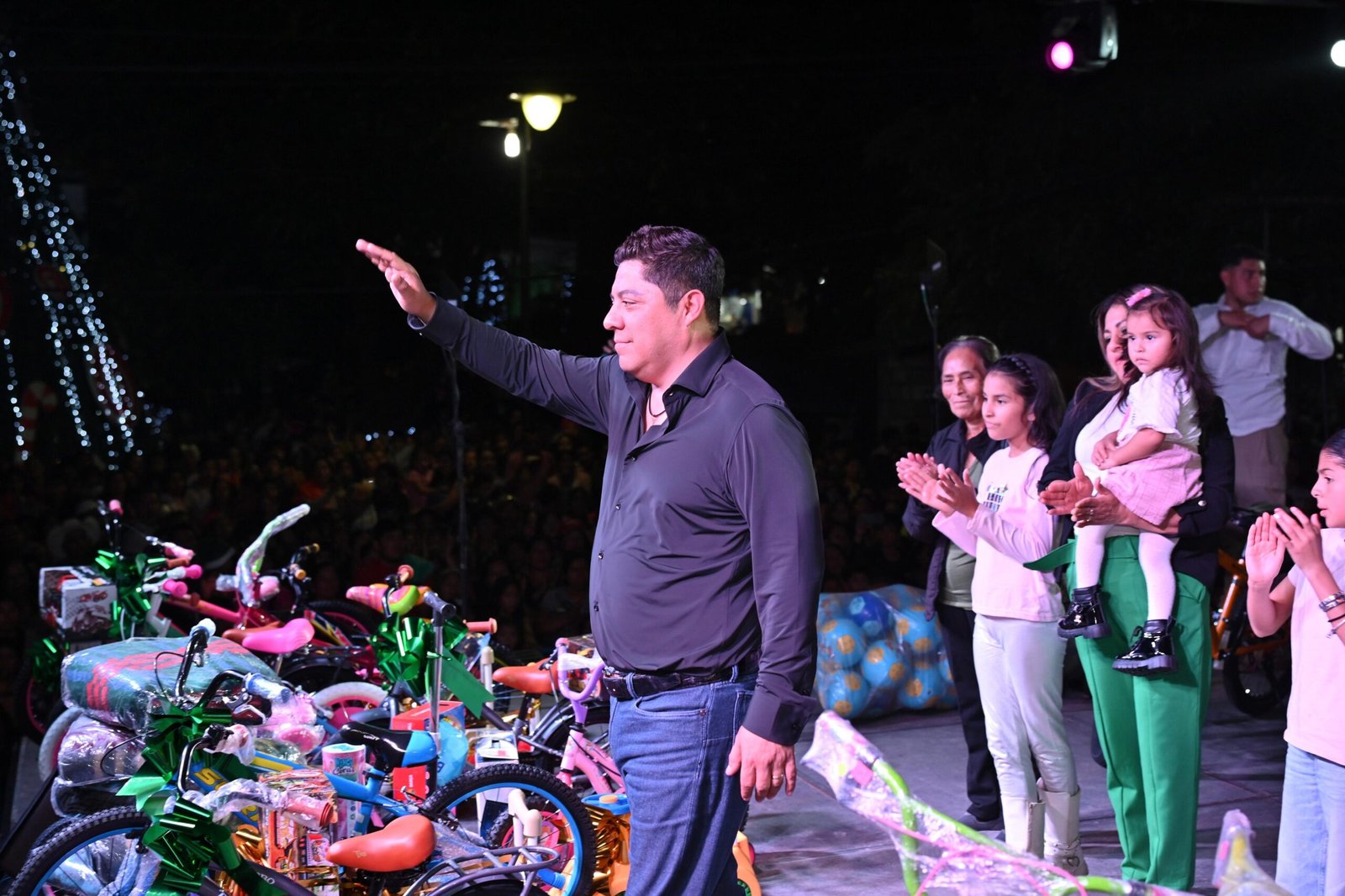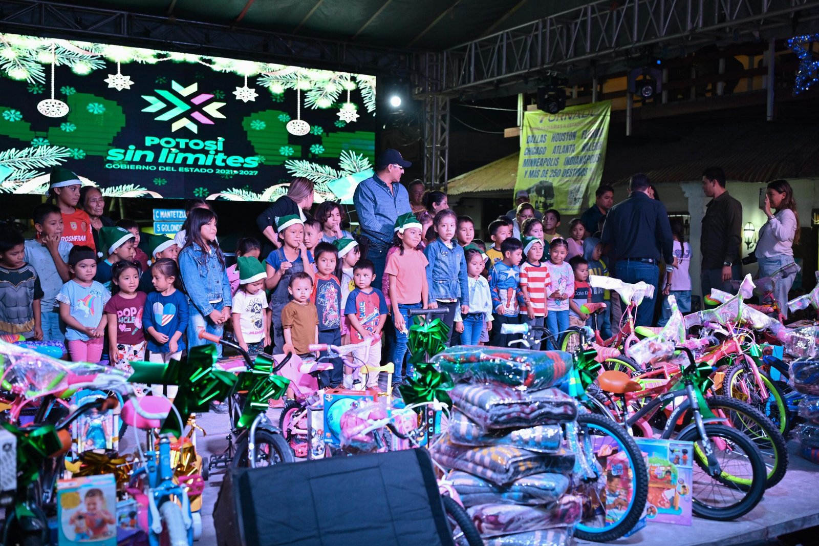 En un ambiente totalmente familiar, Ricardo Gallardo entregó a niñas y niños juguetes, mientras que personas adultas mayores fueron beneficiadas con cobijas, como parte del respaldo solidario para afrontar la temporada invernal. Durante su mensaje, el Gobernador del Estado destacó la importancia de mantener vivas las tradiciones que fortalecen el tejido social y refrendó su compromiso de seguir recorriendo los municipios para llevar bienestar, cercanía y apoyo directo a las familias potosinas.