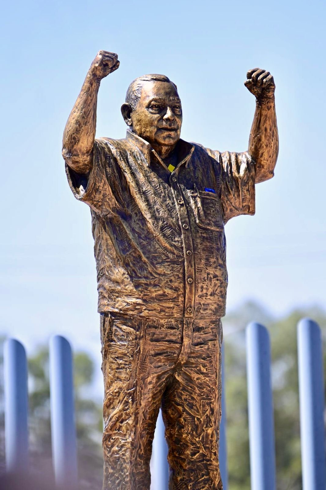 Ricardo Gallardo Cardona, Gobernador de San Luis Potosí, participó en el homenaje y revelación de escultura de Jacobo Payán Latuff, empresario potosino que dejó un legado de pertenencia, orgullo e identidad de la capital del Estado a través del futbol.