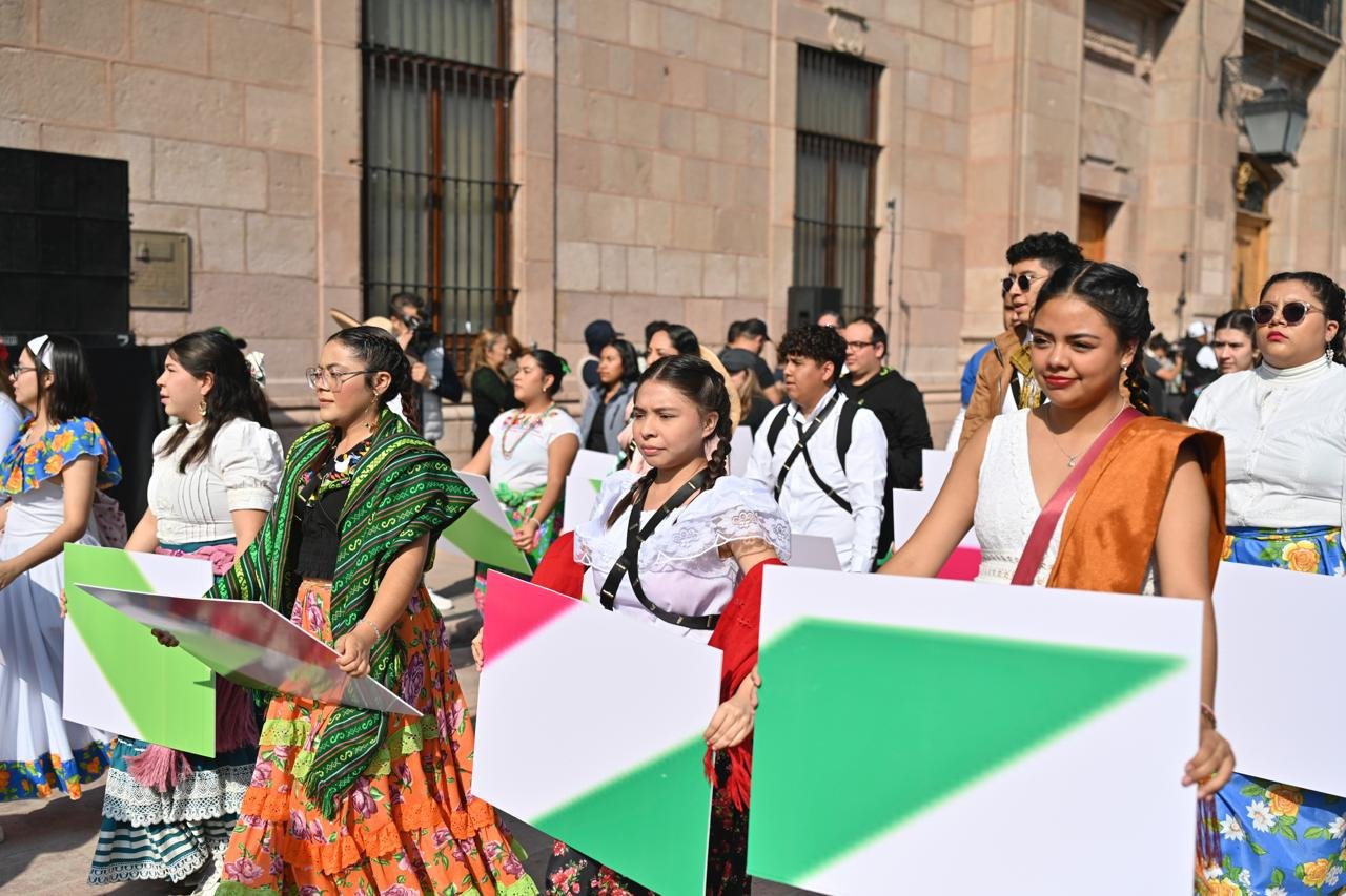Durante el recorrido, las y los espectadores admiraron carros alegóricos, grupos folclóricos, equipos deportivos que mostraron su talento, boxeadores que al aire marcaban sus rutinas, niñas y niños que mostraban su talento de artes marciales, escuelas de la Secretaria de Educación del Gobierno del Estado (SEGE) y del Sistema Educativo Estatal Regular (SEER) que hacían coreografías, integrantes del Pentatlón, medallistas y deportistas de alto rendimiento, que enriquecieron el desfile, junto al Ejército Mexicano, la Guardia Nacional y la Guardia Civil Estatal.