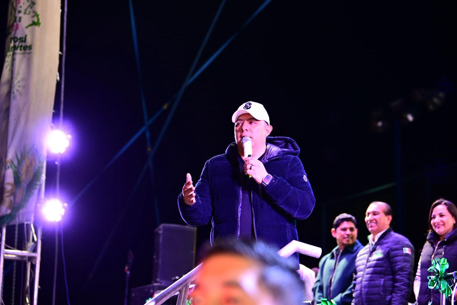En Soledad de Graciano Sánchez, el Gobernador compartió que el 2026 el municipio verá concluido las construcciones del mega puente de Circuito Potosí y Bulevar Valle de los Fantasmas; la Unidad Administrativa Municipal y el Parque Tangamanga III, obras que darán mayor desarrollo y plusvalía a los soledenses, quienes disfrutaron la presentación de los Cadetes de Linares enmarcada en una noche mágica.