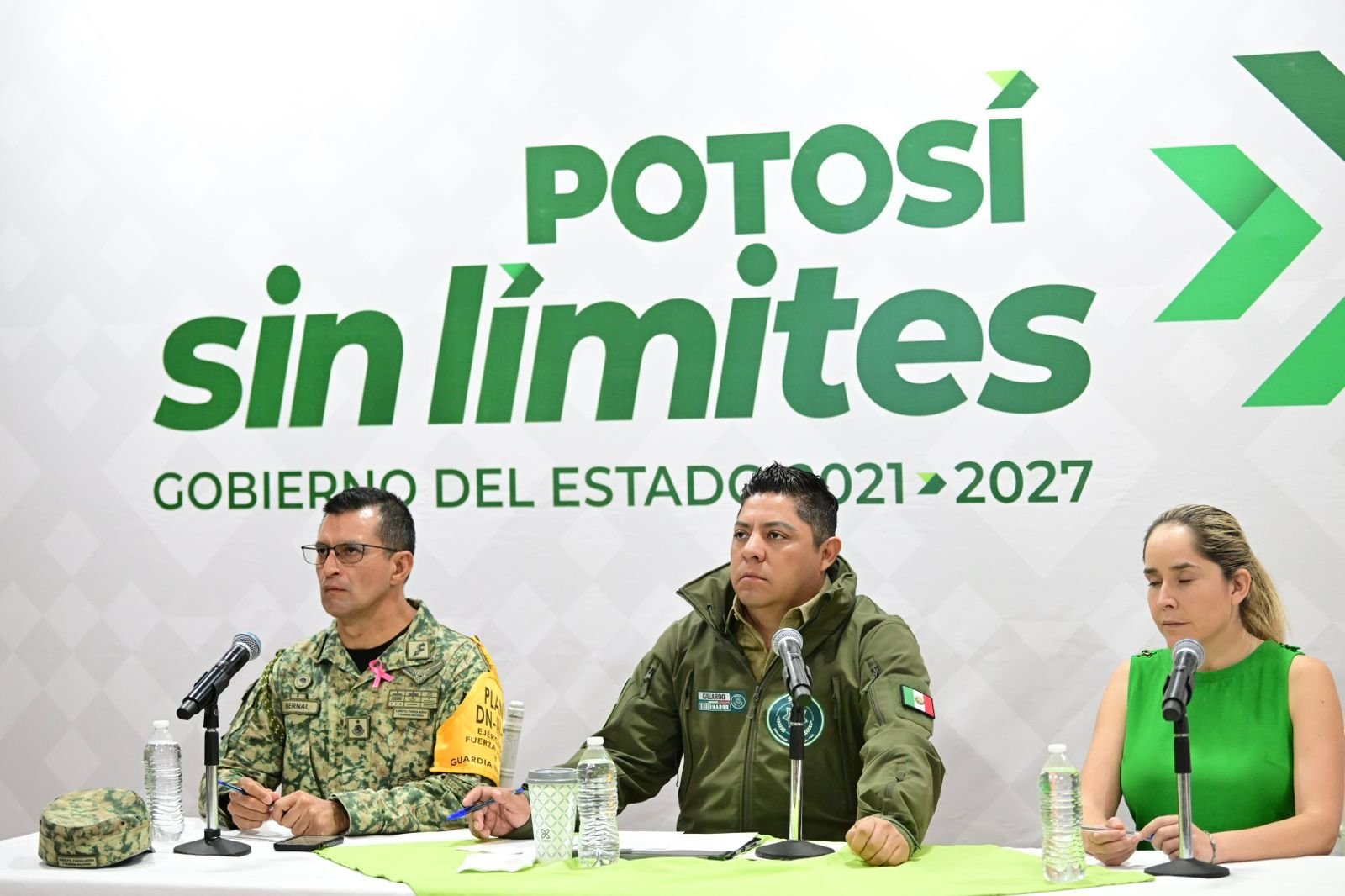 Gallardo Cardona informó el despliegue de mil 400 elementos de la Sedena, la Marina, Guardia Nacional, Guardia Estatal, Protección Civil estatal y de los municipios afectados los que se encuentran apoyando en labores de ayuda.