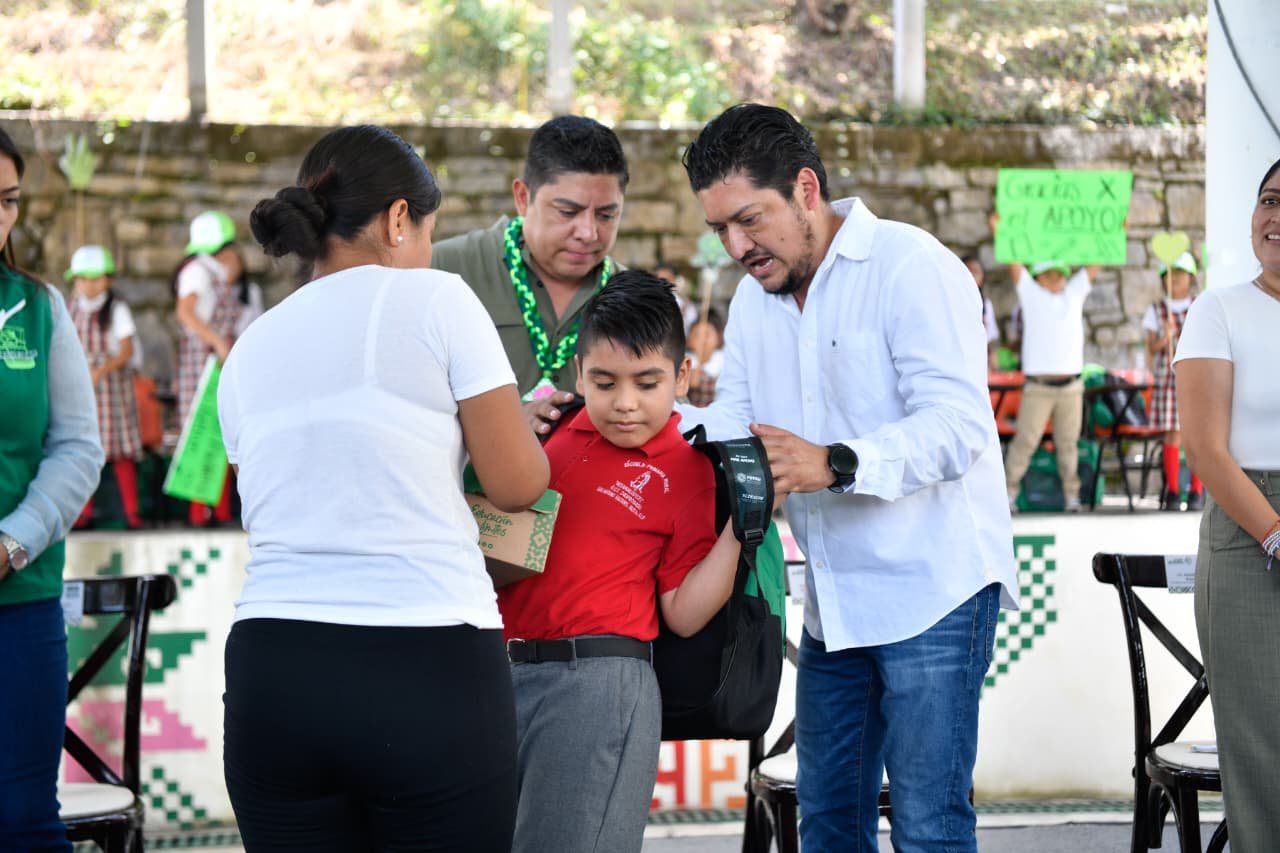 * También entregó mochilas, útiles, cuadernos y zapatos del programa Educación Sin Límites en Xilitla y Tamazunchale.