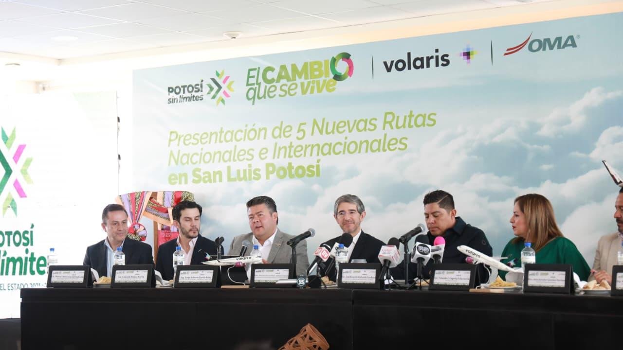 El Gobernador del Estado, Ricardo Gallardo Cardona, presentó las cinco nuevas rutas nacionales e internacionales de la aerolínea Volaris que conectarán a San Luis Potosí con Monterrey, Guadalajara, Puebla, Puerto Vallarta y Chicago, Estados Unidos, lo que impulsará la conectividad sin límites, el turismo, facilitará los vínculos comerciales y fortalecerá el dinamismo de la Entidad.