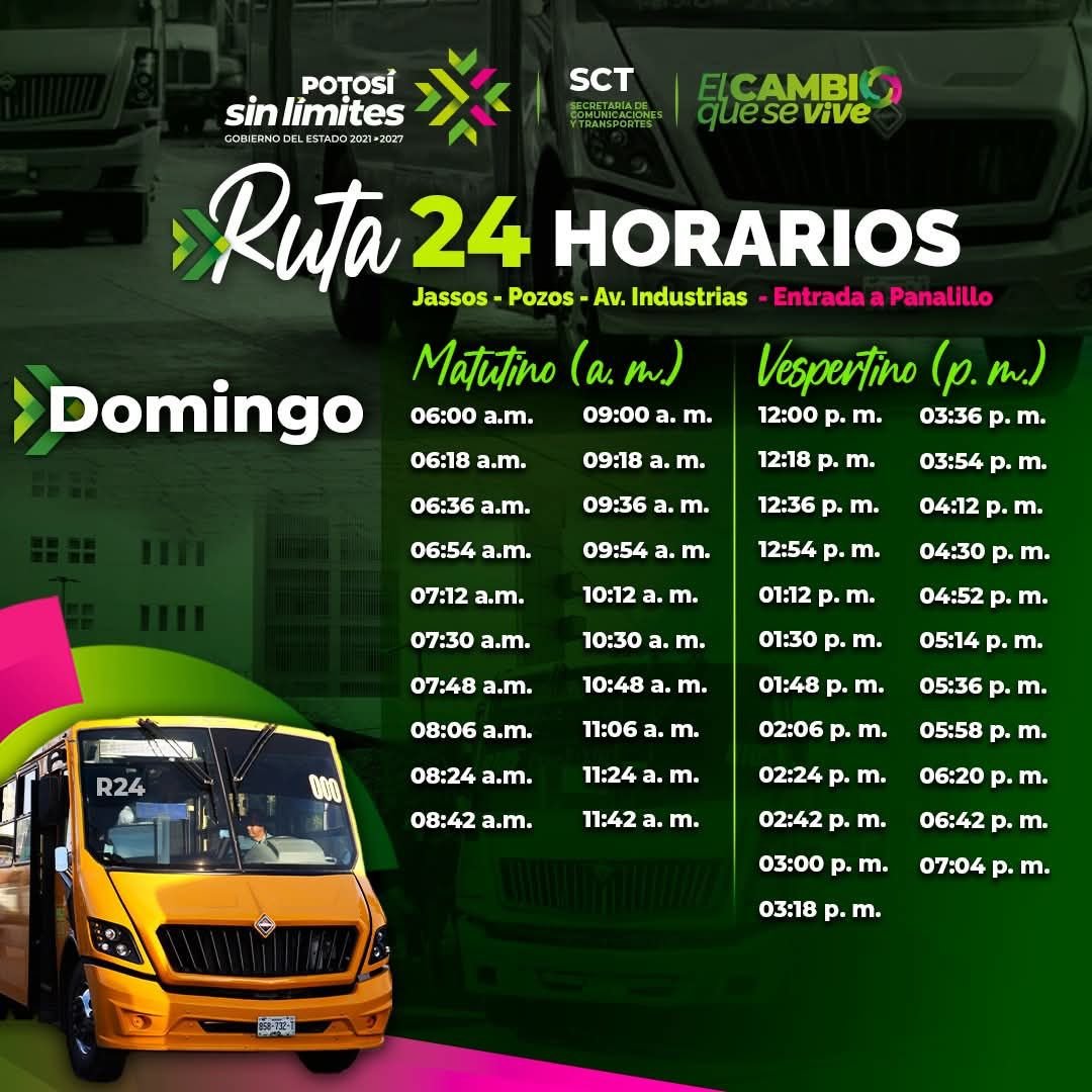 Cumpliendo con el compromiso del Gobernador Ricardo Gallardo Cardona de mejorar el transporte público, la Secretaría de Comunicaciones y Transportes (SCT) puso en marcha la ampliación de la Ruta 24 del transporte público concesionado, que ahora incorpora un tramo desde San Nicolás de los Jassos hasta su conexión con Villa de Pozos y la zona metropolitana, avanzando sin límites en la conectividad.