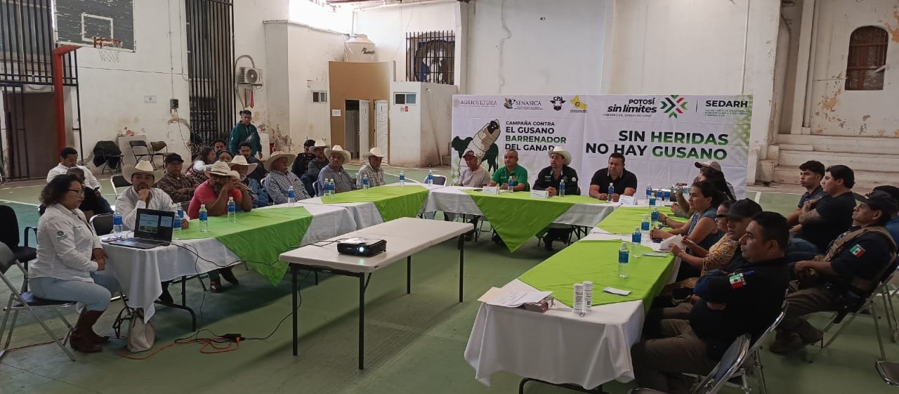 La Secretaría de Desarrollo Agropecuario y Recursos Hidráulicos (Sedarh), en coordinación con las uniones ganaderas y el Servicio Nacional de Sanidad, Inocuidad y Calidad Agroalimentaria (Senasica), ha extendido acciones sanitarias desde los primeros reportes en municipios de la Huasteca hacia la región Media, Centro y Altiplano. Entre las medidas destacan baños de ganado, limpieza de heridas y corrales, así como orientación técnica para evitar que la mosca Cochliomyia hominivorax afecte a los hatos.