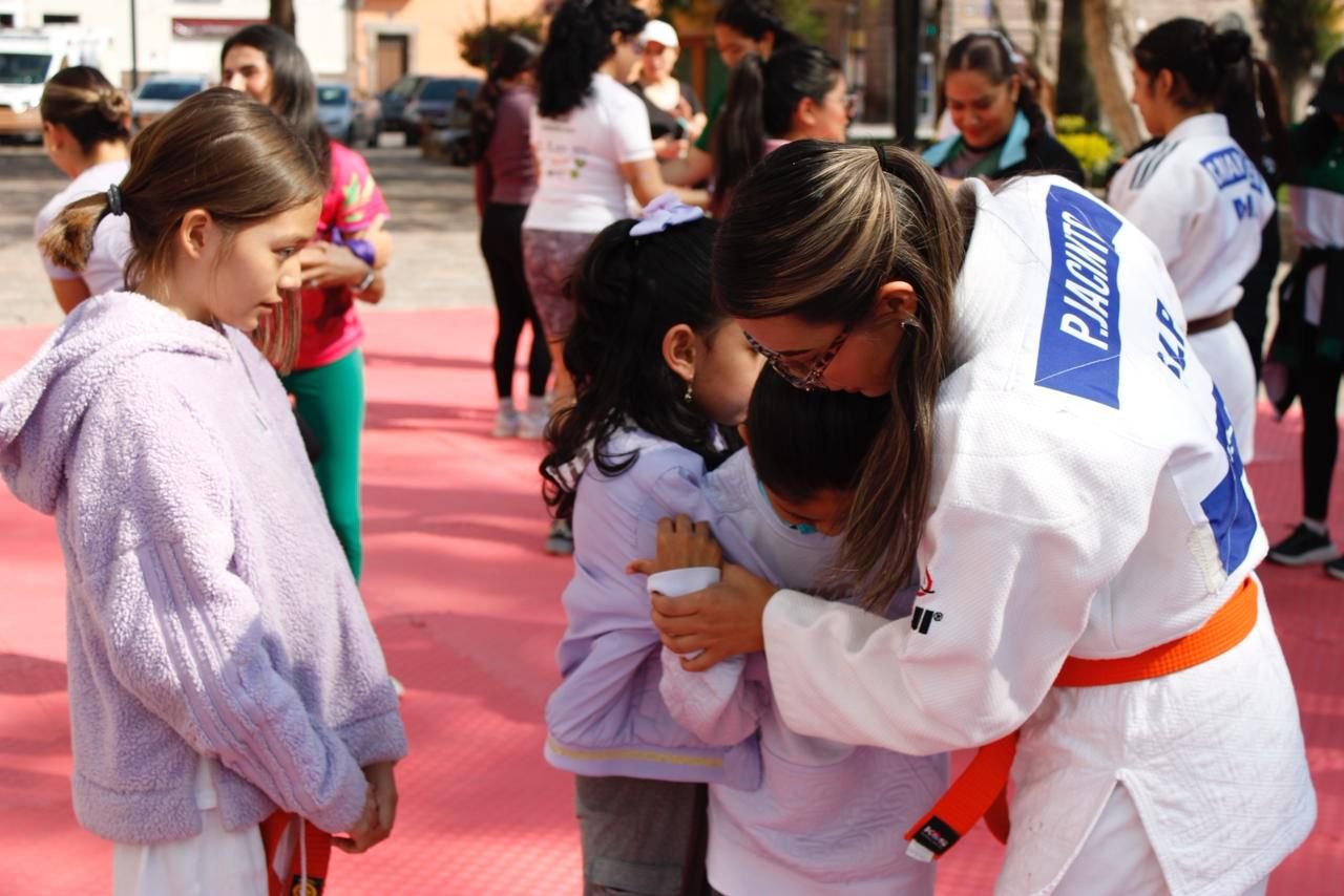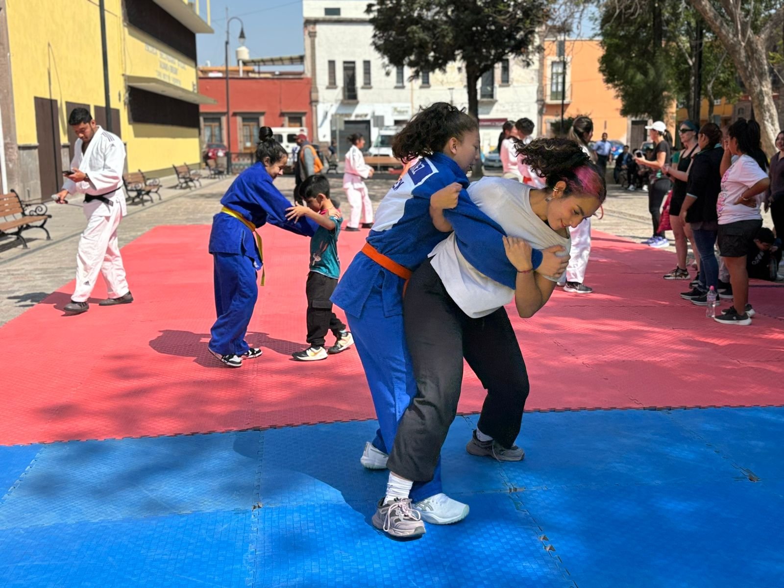 El evento principal se realizó frente a las instalaciones de la Secretaría de las Mujeres, ubicadas en Jardín Colón No. 23, donde se contó con la participación presencial de alrededor de 100 personas, mientras que más de 550 mujeres se sumaron de manera remota a través de los 22 Centros de Atención Integral para las Mujeres distribuidos en diversos municipios del estado. Esta iniciativa fue posible gracias a la coordinación entre la Secretaría de las Mujeres, el Instituto Potosino de Cultura Física y Deporte (Inpode) y la Asociación Potosina de Judo.