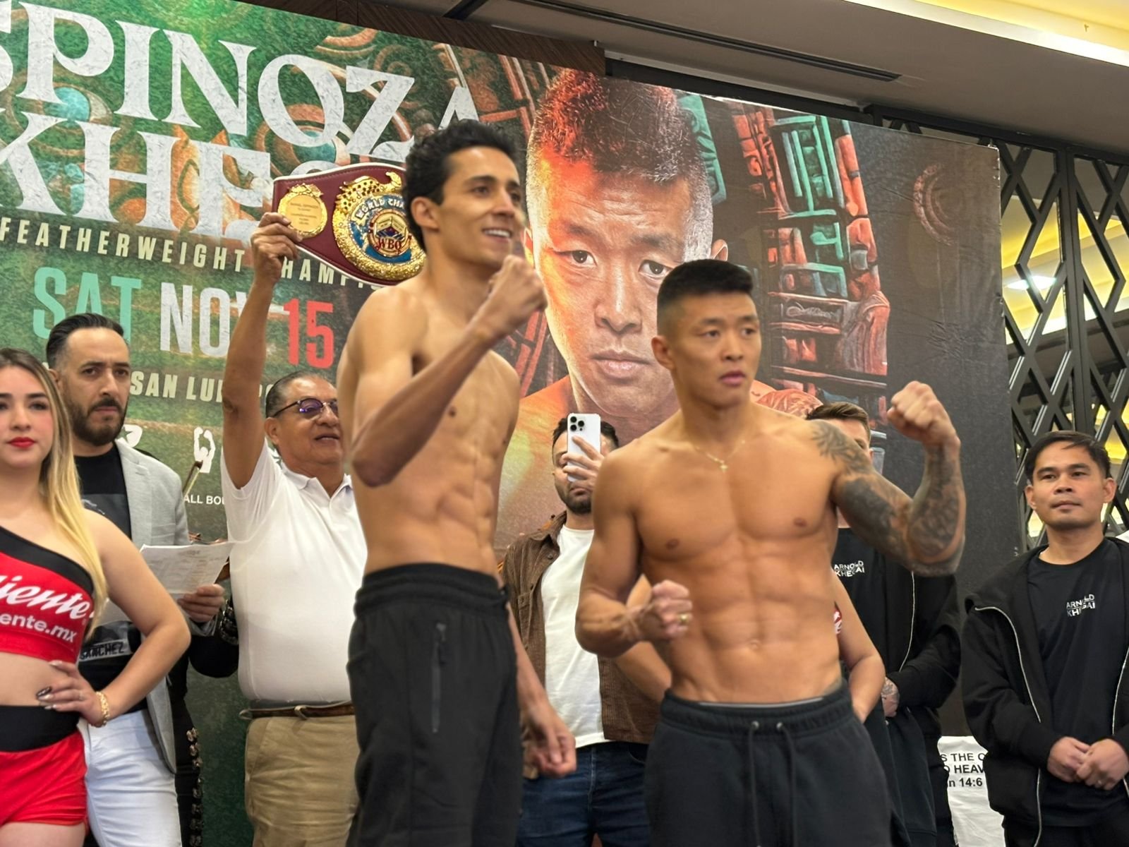 San Luis Potosí se encuentra preparado para una noche memorable con la función de boxeo profesional organizada por Zanfer Boxing, respaldada por el Gobernador Ricardo Gallardo Cardona, cuyo impulso sin límites ha permitido traer espectáculos de talla mundial a la entidad. En la ceremonia oficial de pesaje, Rafael “El Divino” Espinoza y Arnold Khegai superaron sin contratiempos la báscula en la división pluma, dejando todo listo para disputar el Campeonato Mundial de Peso Pluma WBO ante un público que promete abarrotar la Arena Potosí.